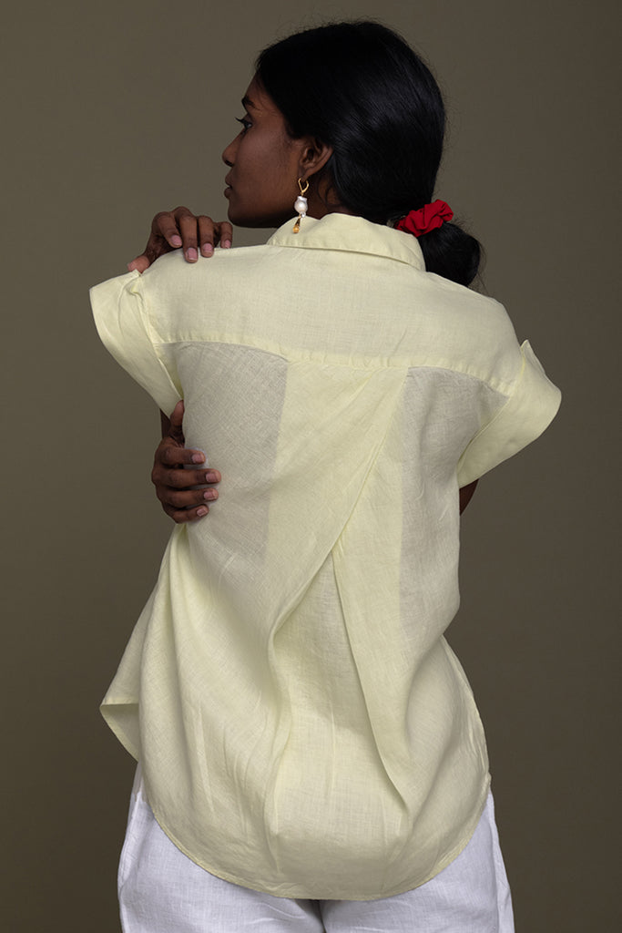 Simple and classic, this shirt is a wardrobe must-have with detailing on the back for a shapely silhouette. The triangle inside the sleeve coves up bra peek-a-boos!