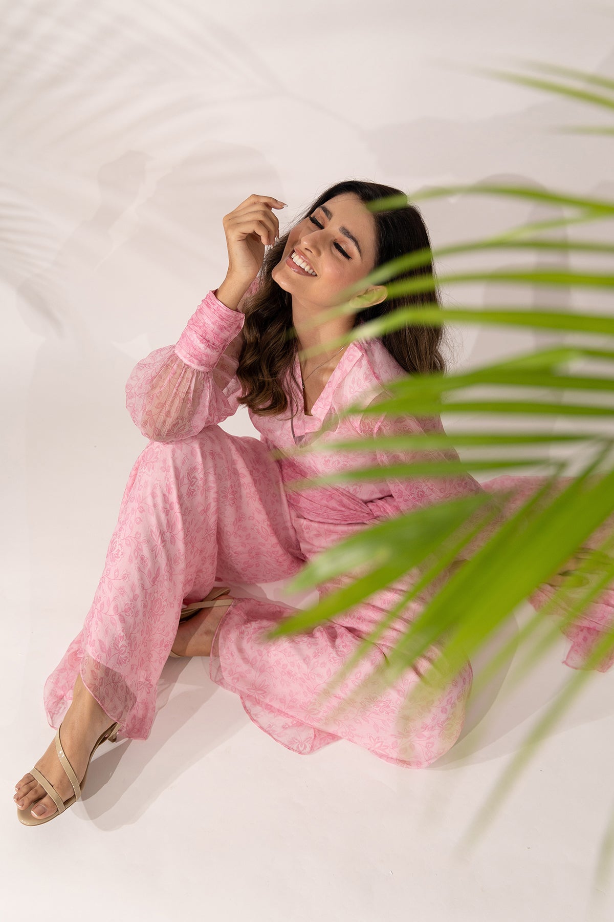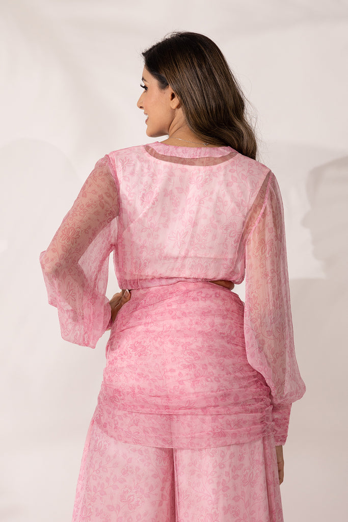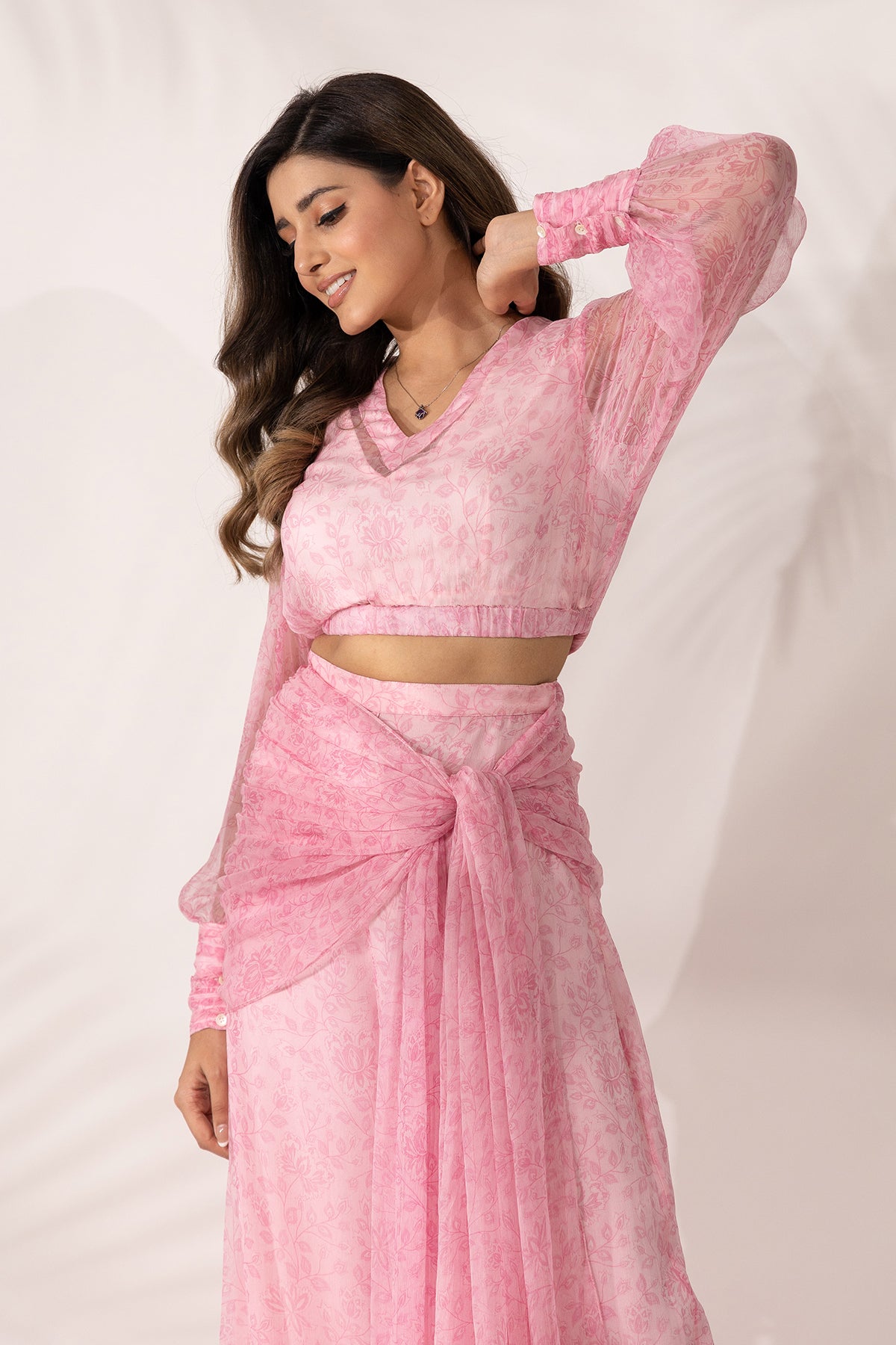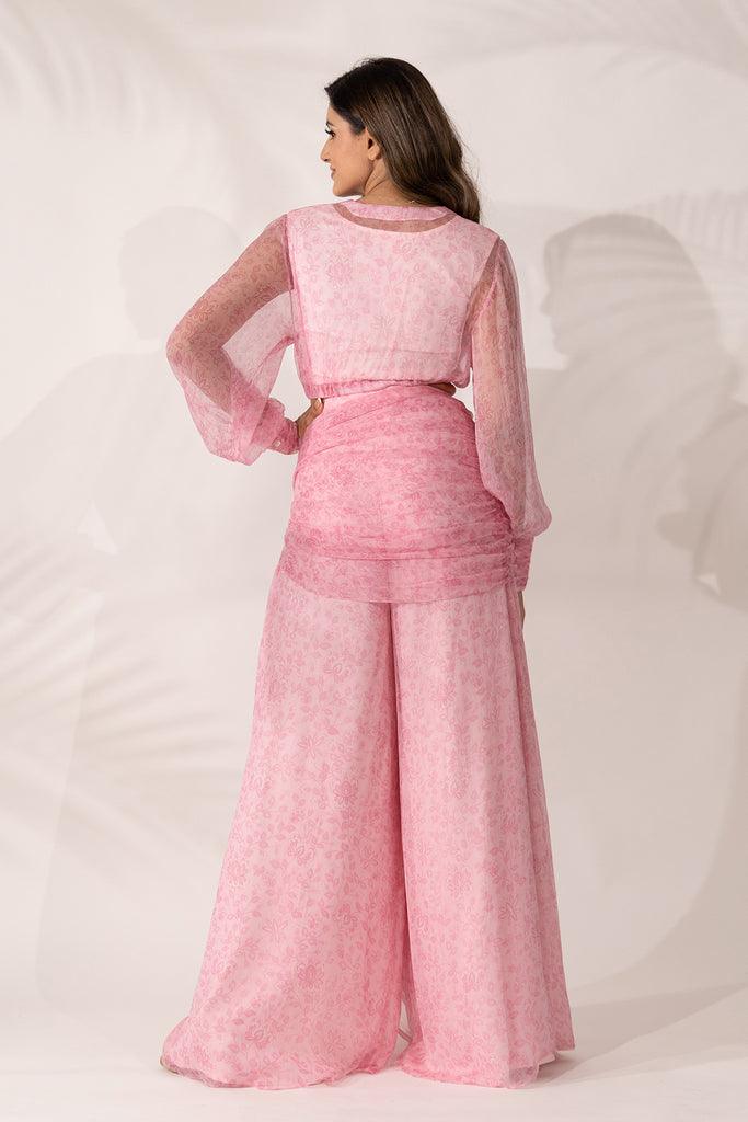 Cherry Blossom Co-Ord with Batwing Sleeves Top and Tie-up Pants