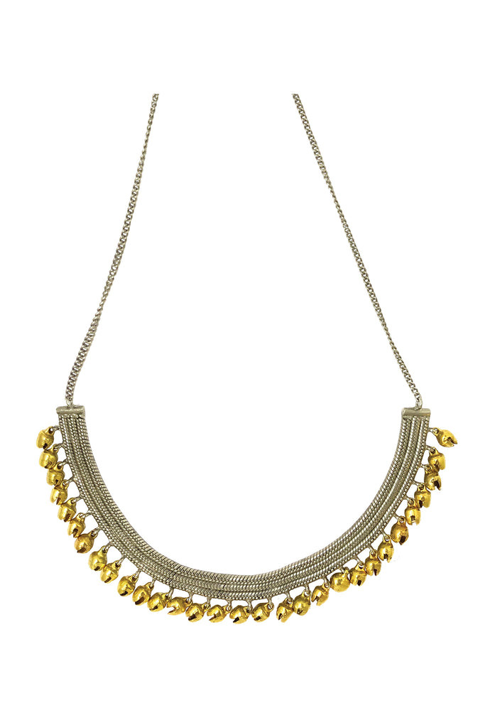 This neckpiece is handcrafted to perfection using fine quality brass and ghungroos with light silver and gold plating on it. Traditional look with modern simplicity is what this neckpiece has to offer.