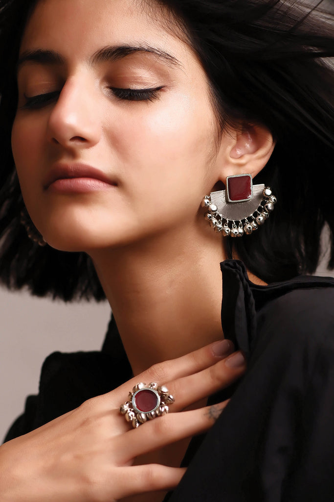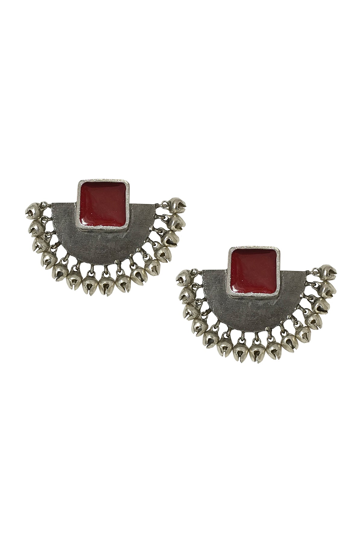 These beautiful pair of earrings are handcrafted to perfection using fine quality brass, ghungroos and black enamel with light silver plating on it. Traditional look with modern simplicity is what these earrings has to offer.