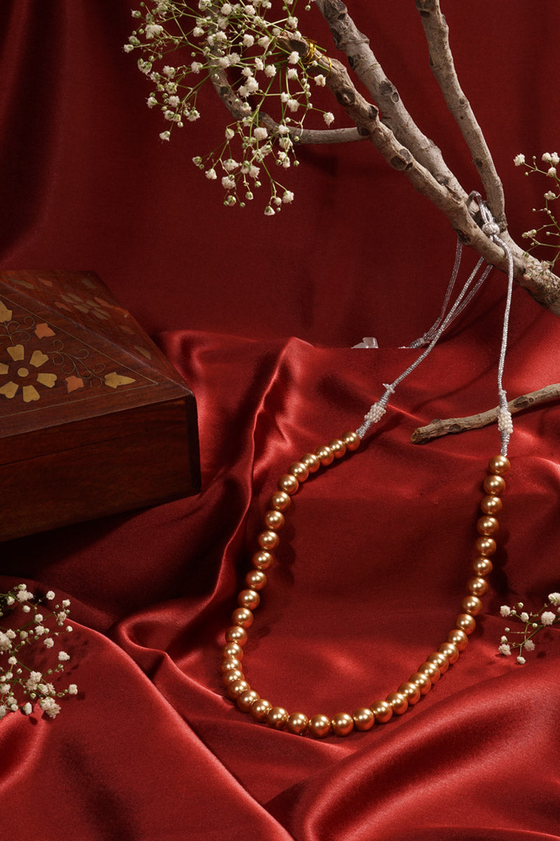 This jewellery set consists of a Necklace & a pair of Earrings. Copper Brown Beaded Pearl Jewellery Set, secured with drawstring closure. A pair of matching earrings each secured with post and back closure.