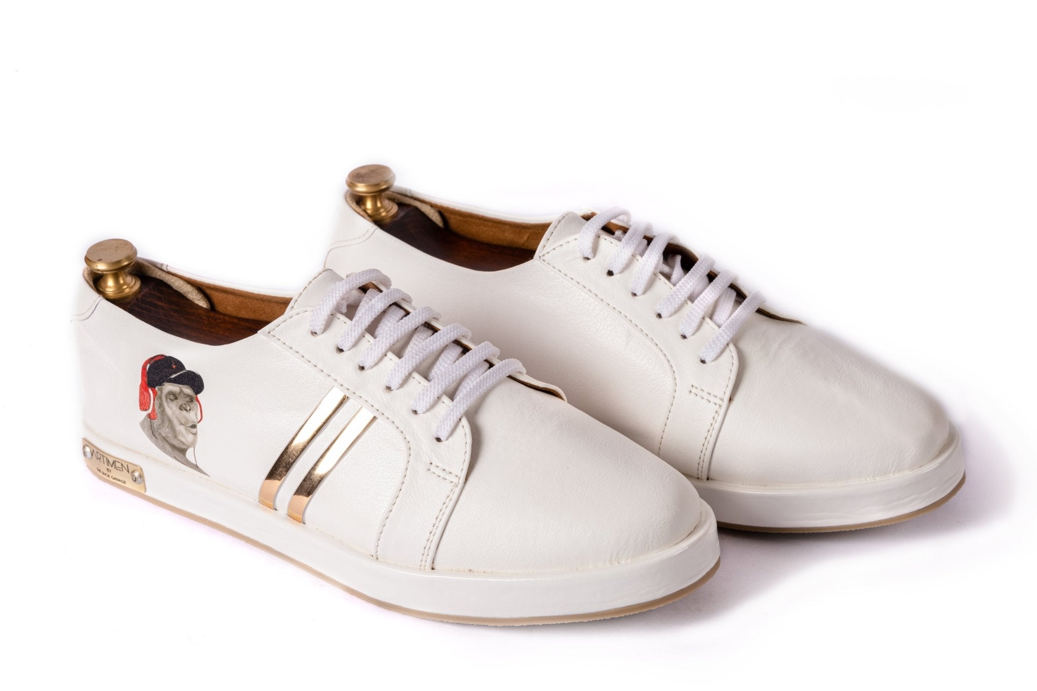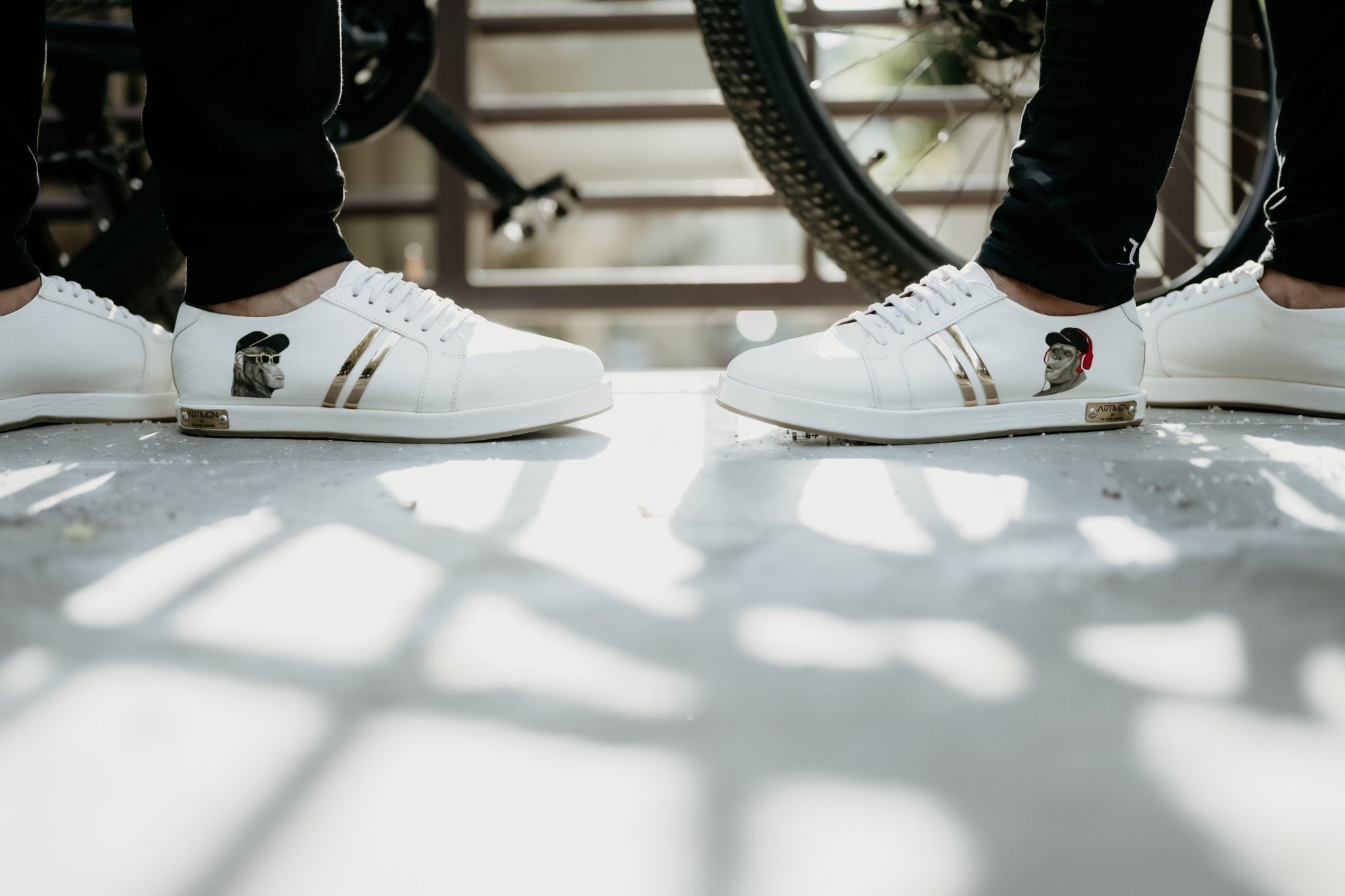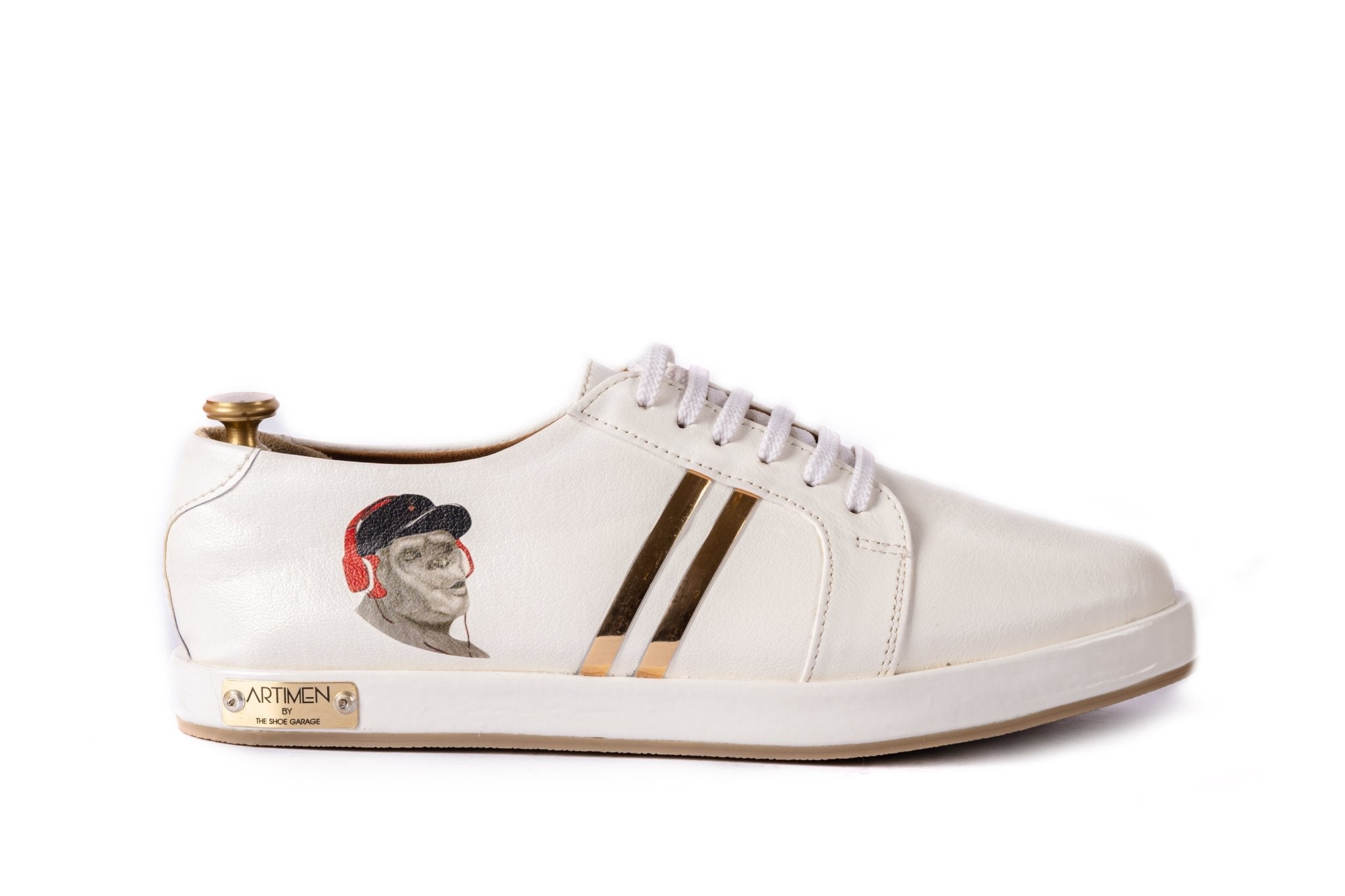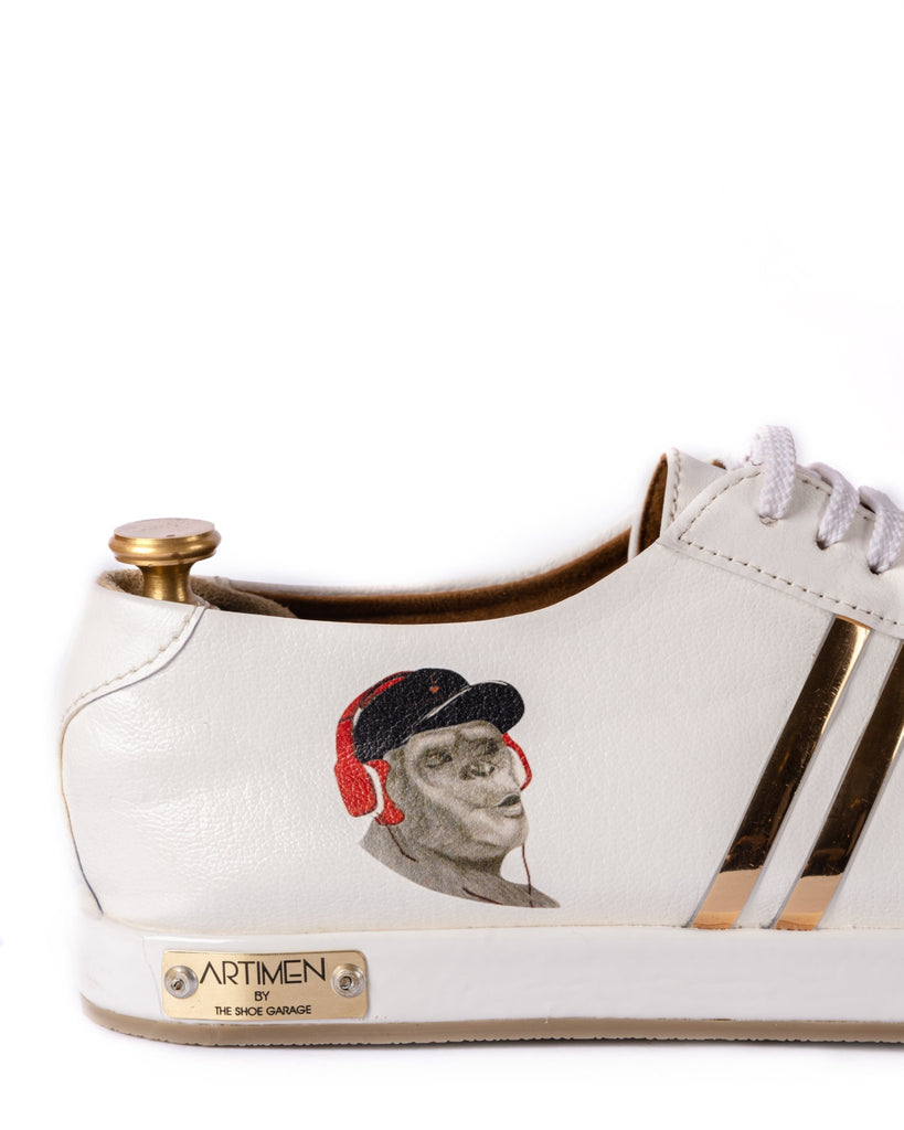 We have brought in our founder's art to your feet with these limited edition. It is not a print but a sketch that has gone on every pair to make your walk full of fun and a different vibe. A subtle mix of the 'Monkey with headphones' with our trademark two golden strips and Artimen Name Plate to its element.
