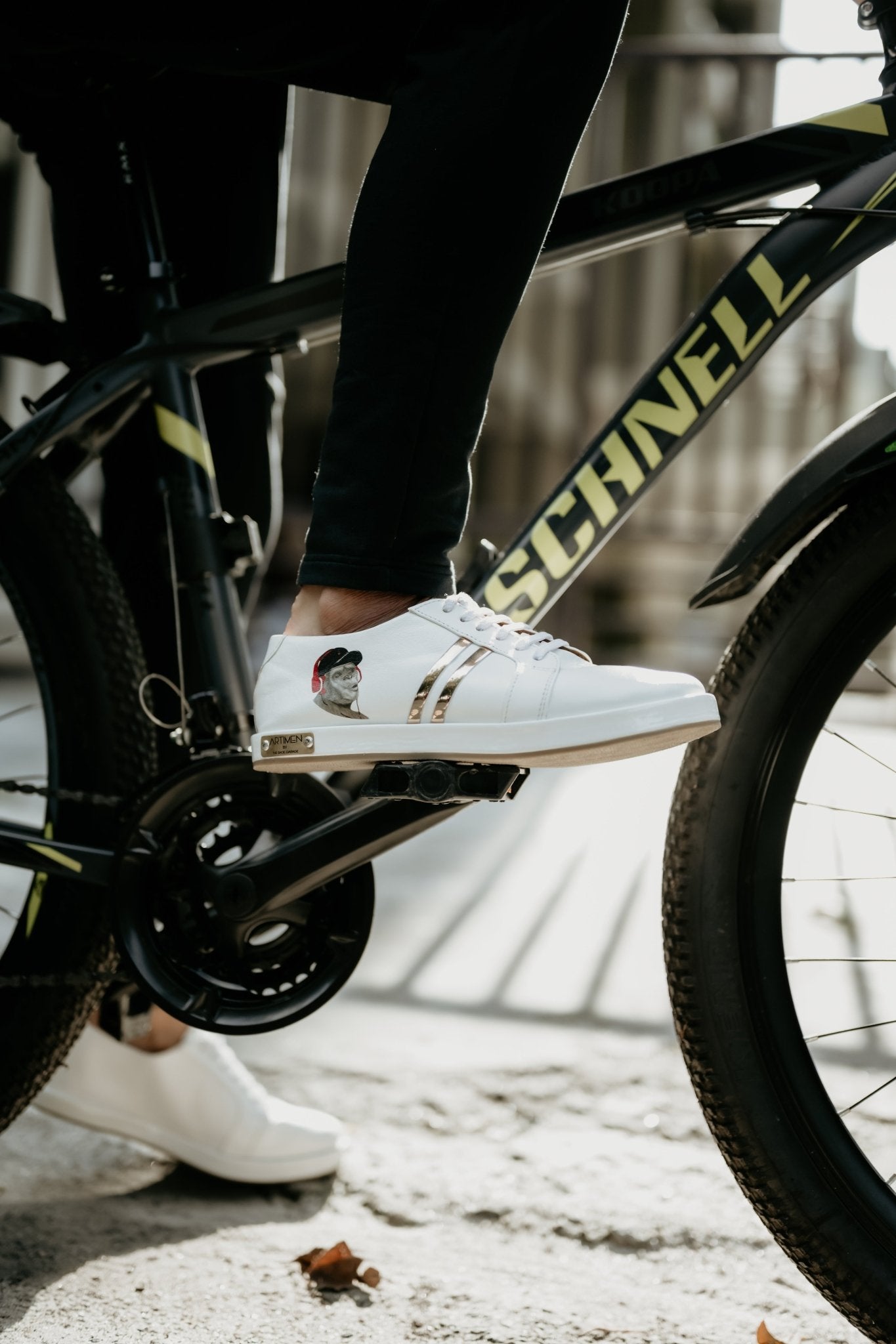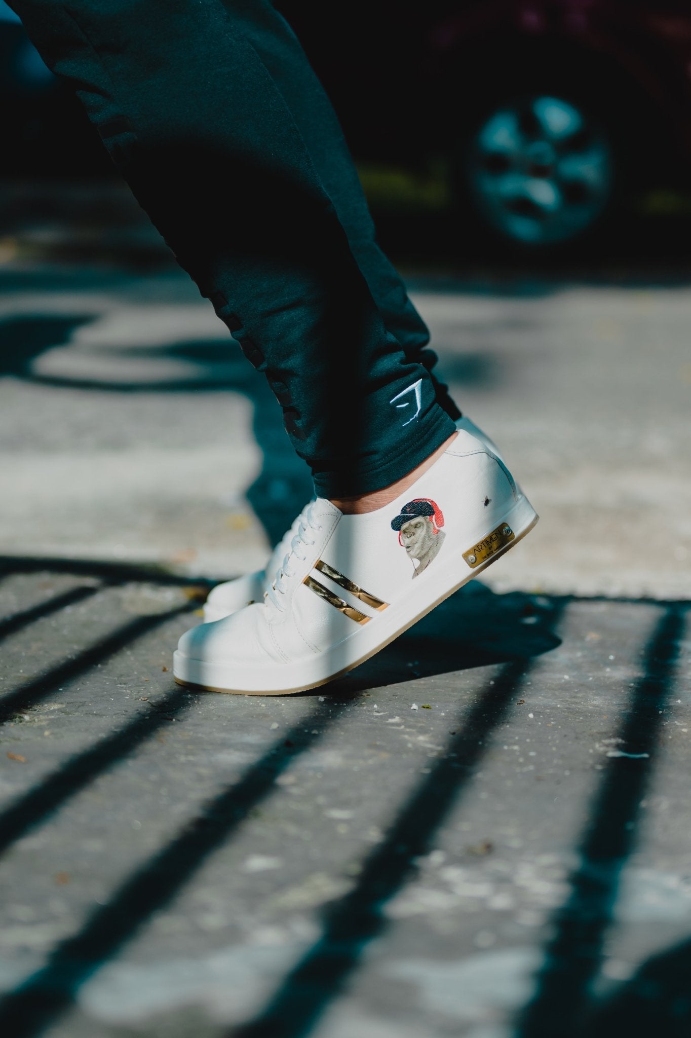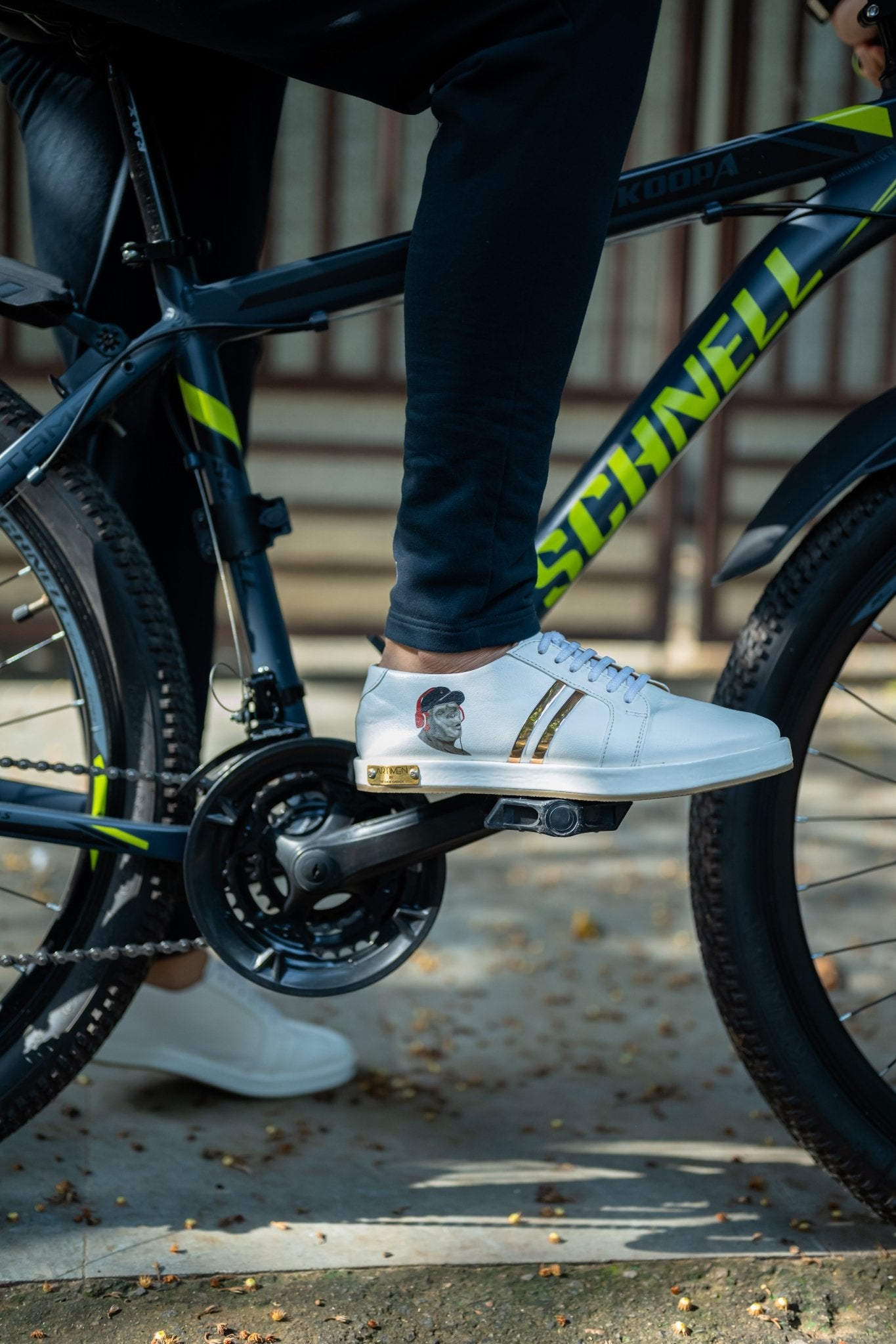 We have brought in our founder's art to your feet with these limited edition. It is not a print but a sketch that has gone on every pair to make your walk full of fun and a different vibe. A subtle mix of the 'Monkey with headphones' with our trademark two golden strips and Artimen Name Plate to its element.