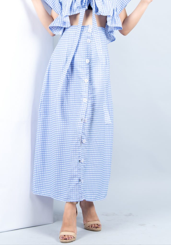 Featuring this super stylish and very unique buttoned skirt, it is lightweight and super easy to carry. Pair it with our matching ruffle hem top or you can wear it with vest top or tees to give it a casual look.