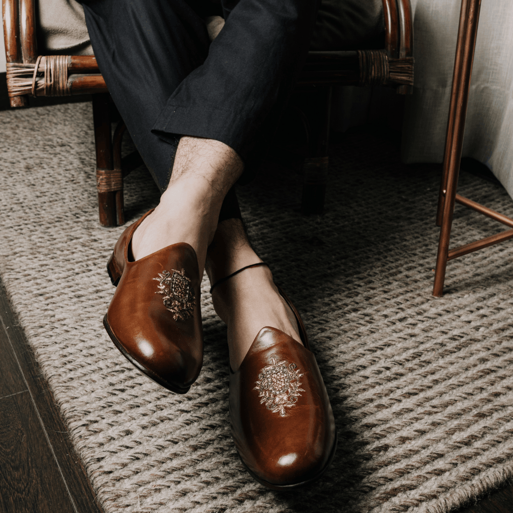 One of the hottest selling, most loved and appreciated pair. This Jutti shoe with a motif has been a hit for all our clients across the world. Comfort and class at its best. The sides of this design goes a little deeper to give it a more traditional look.