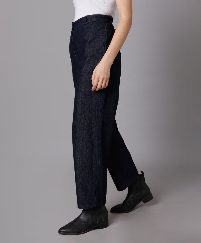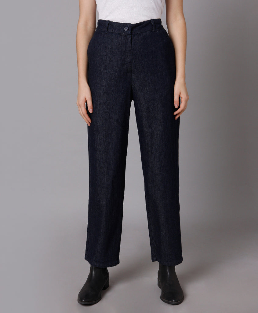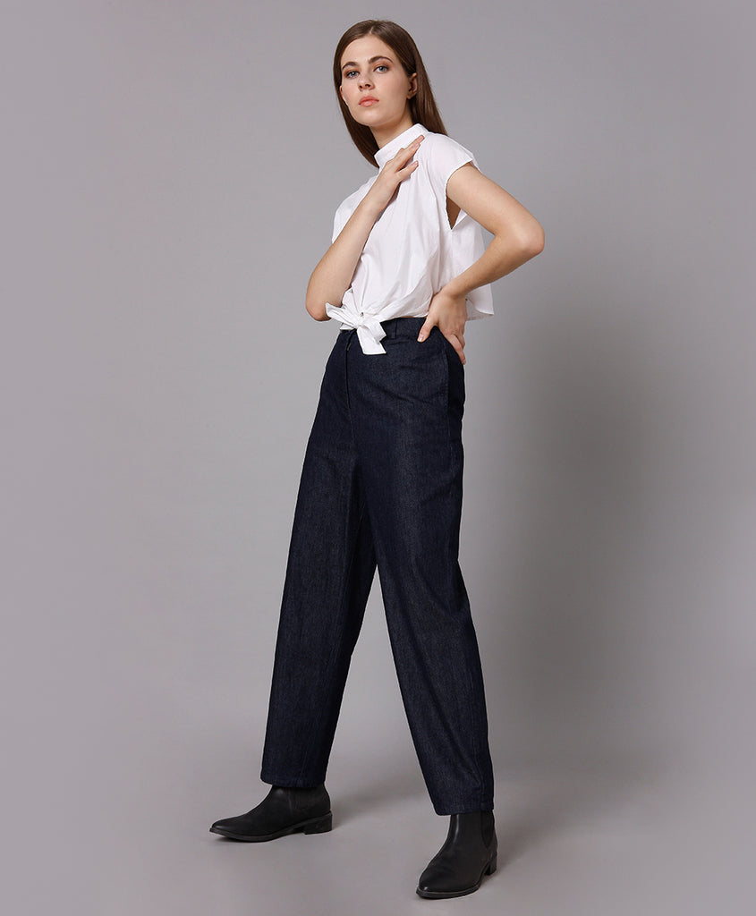 Restore the dated Denim with our Chic and Fresh Cotton Denim Straight Pants created from sustainable Cotton.