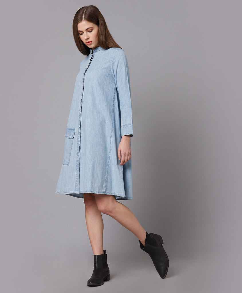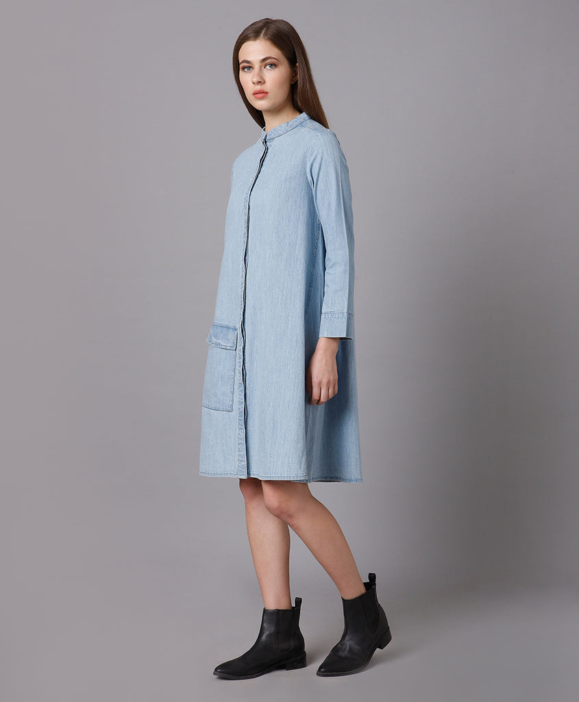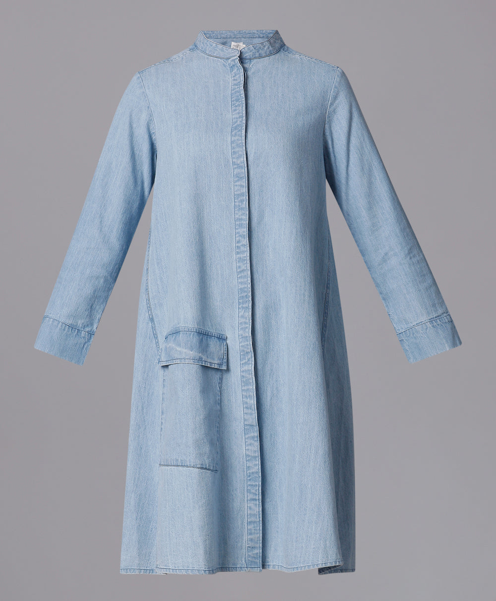 A Shirt Dress is Imperative to every Closet. Created from Organic Cotton, this Dress is Styled with a Mandarin Collar and a Concealed Placket.