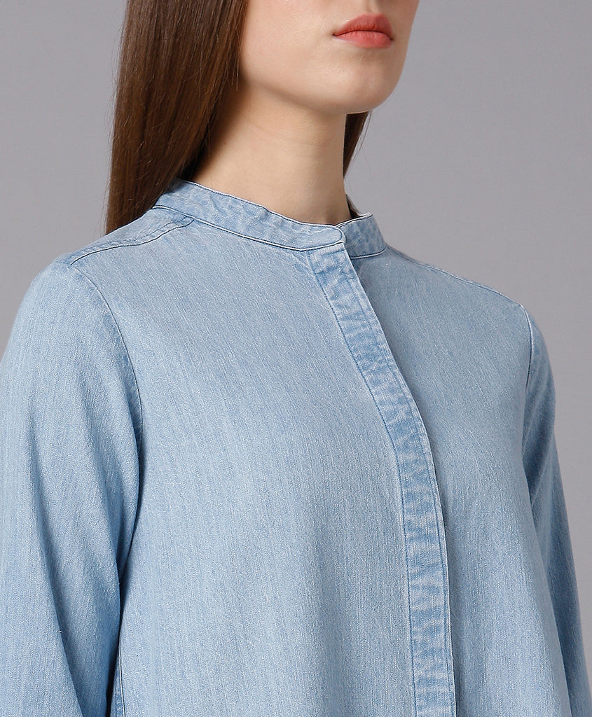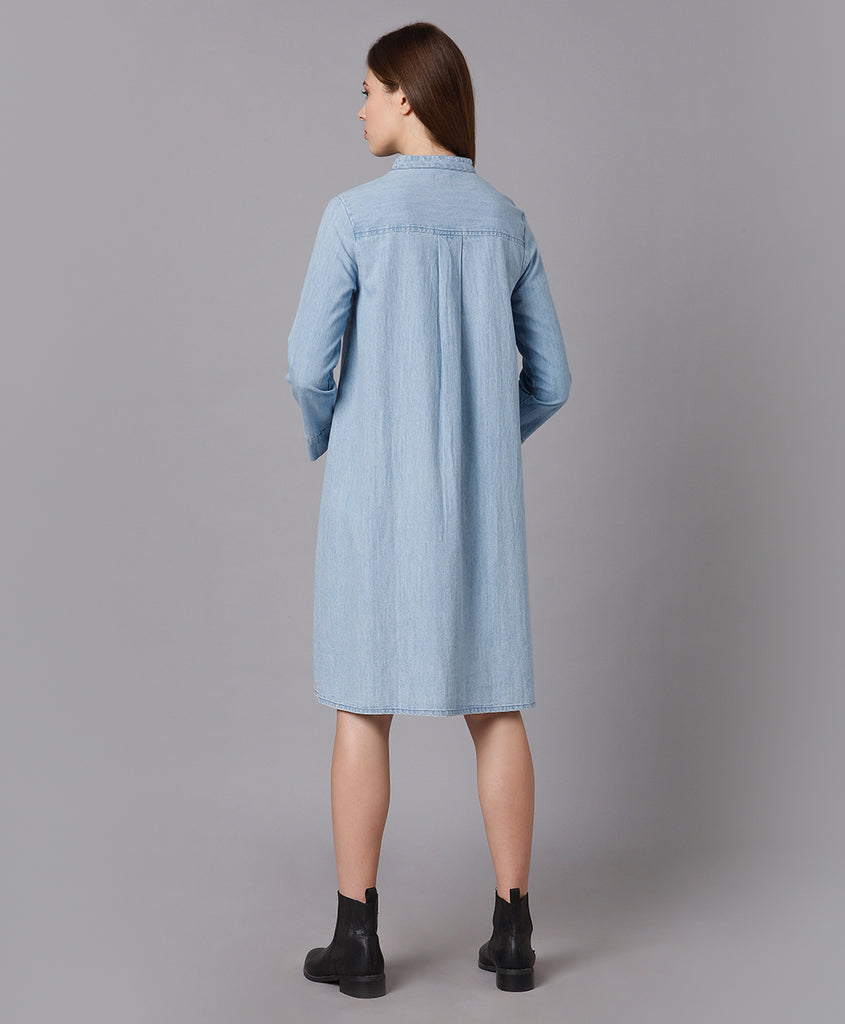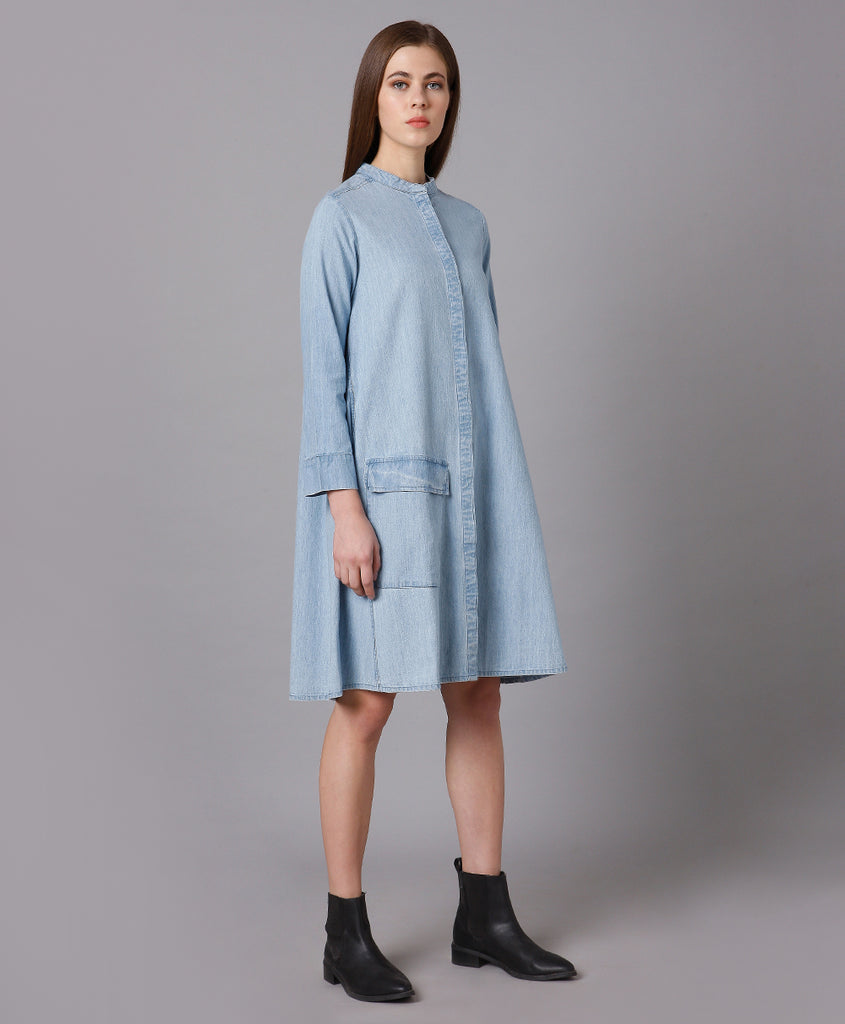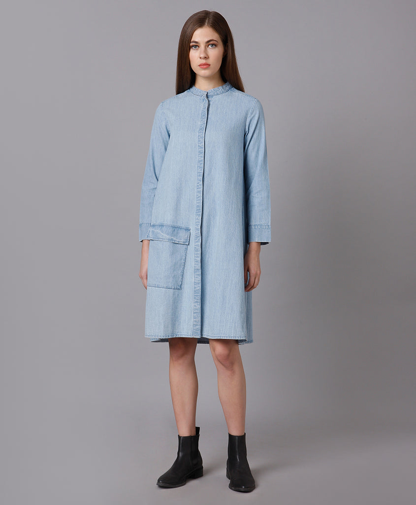 A Shirt Dress is Imperative to every Closet. Created from Organic Cotton, this Dress is Styled with a Mandarin Collar and a Concealed Placket.