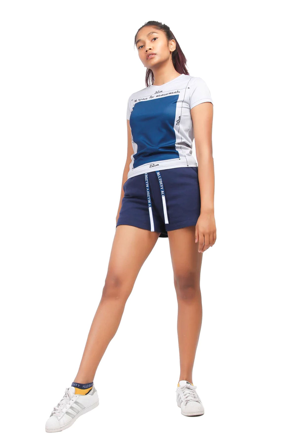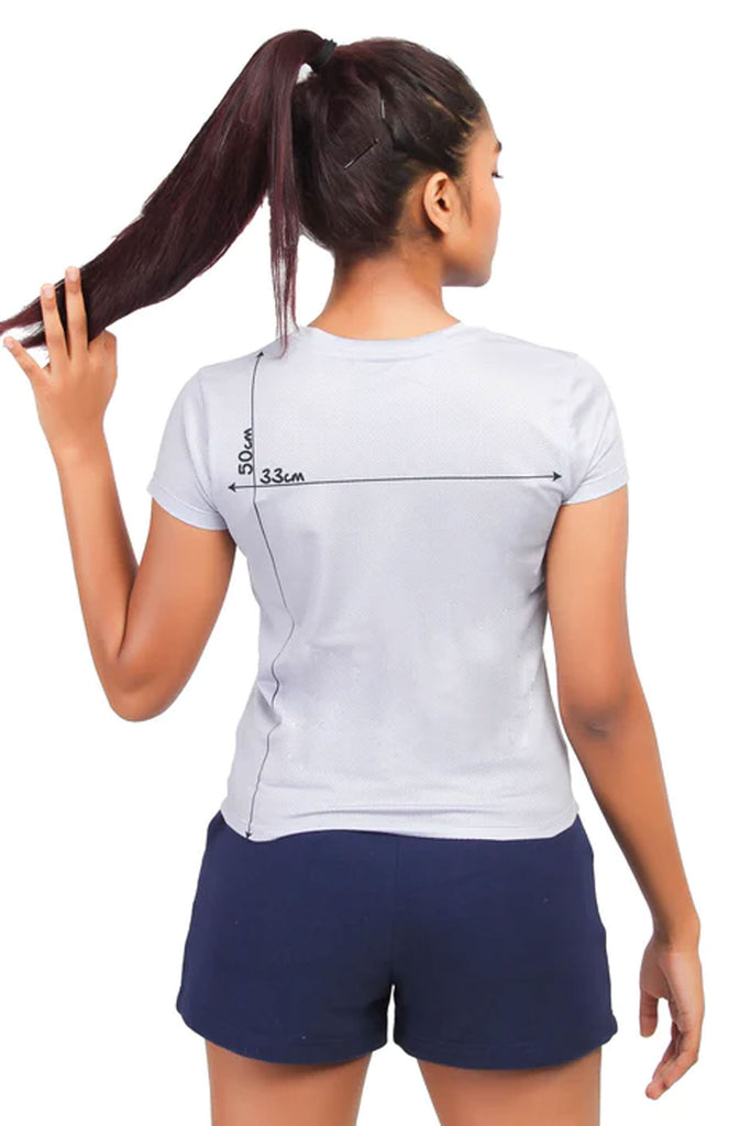 Short sleeve mesh jersey in grey. Crewneck collar. Measurements printed in black throughout. “No space for measurement” graphic at chest. Tonal stitching.