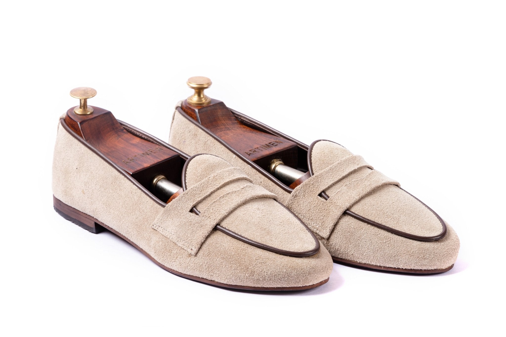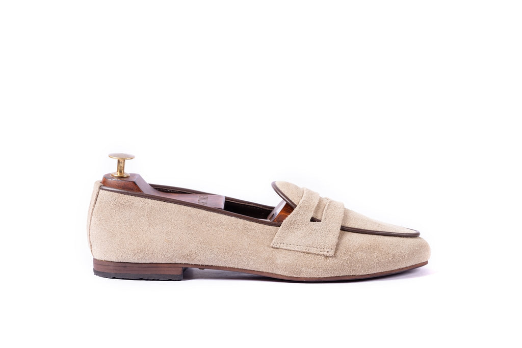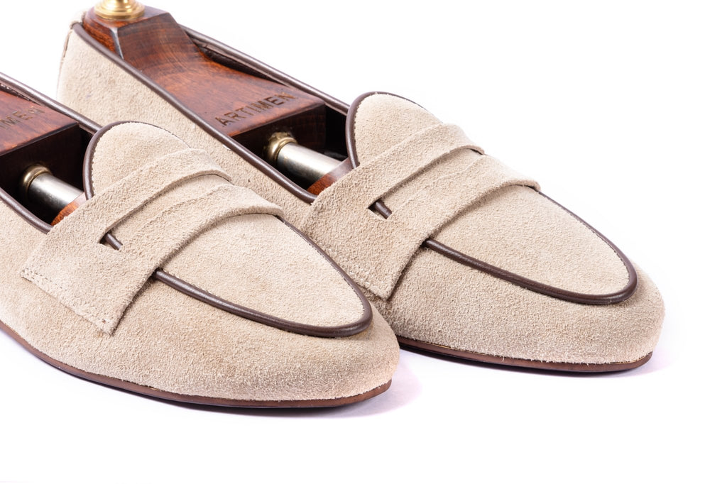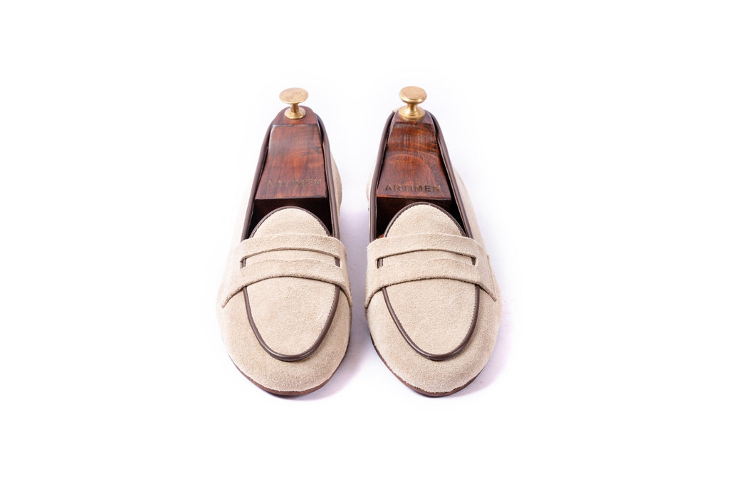 When style meets comfort. A light beige penny loafer fit for a perfect casual step. Can be paired with shorts, chinos or jeans on a nice fun step out. One of our latest additions to the smart casual collection. Brown leather piping gives the beige a nice subtle break. Artimen always strives towards keeping your steps elegant and stylish.Β