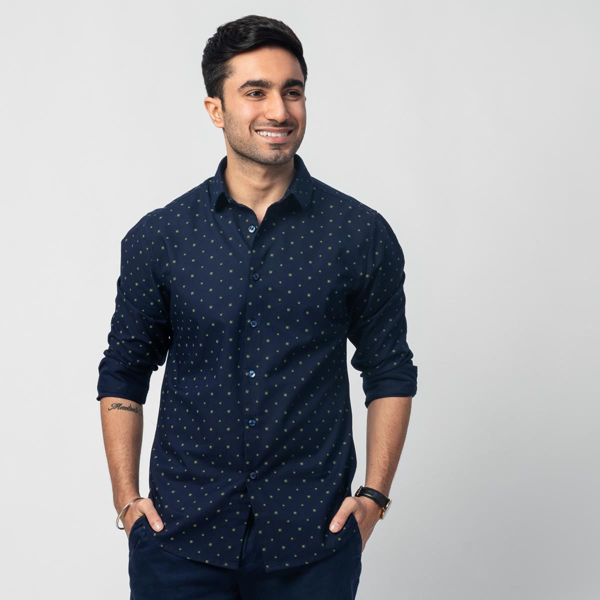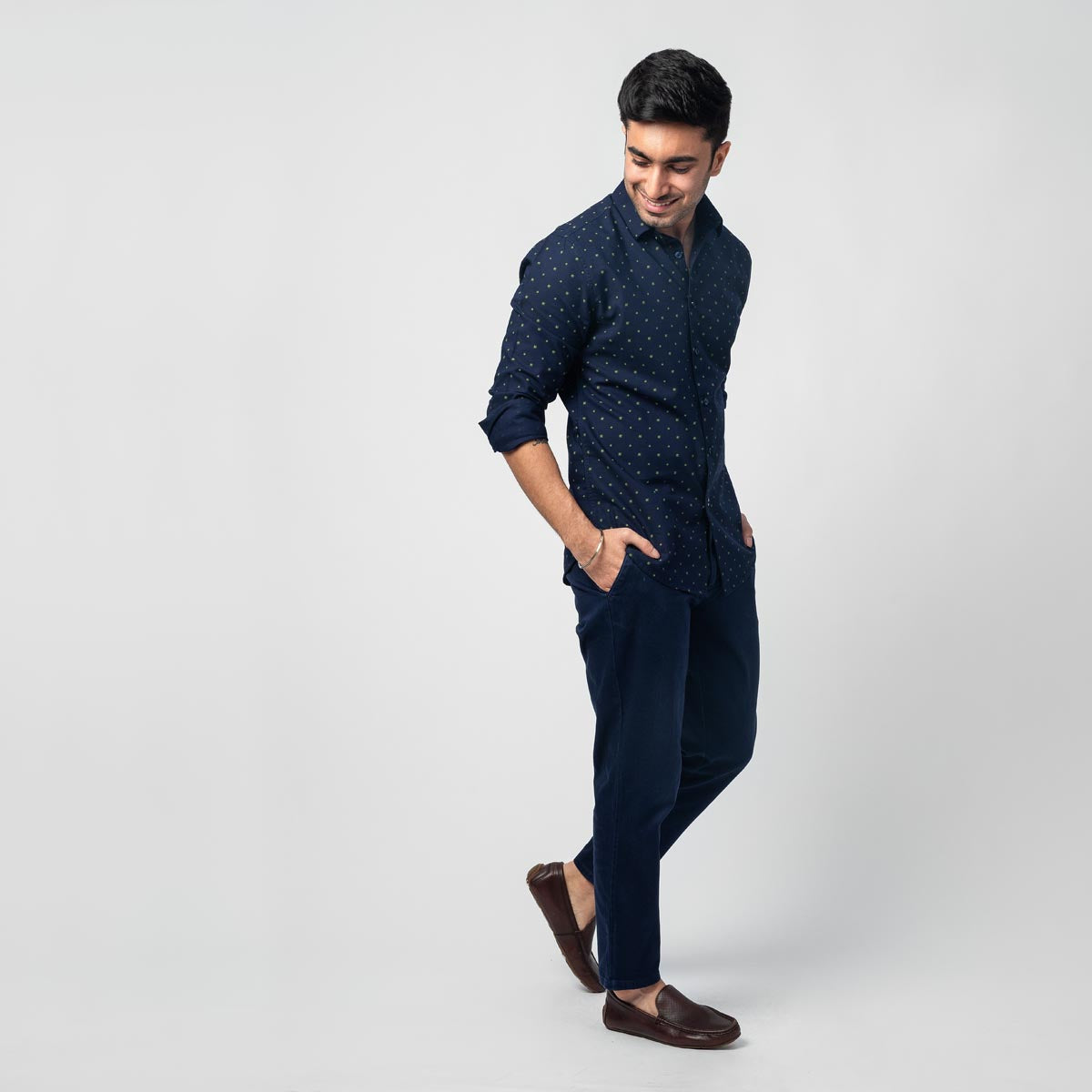 This contemporary floral printed shirt makes a perfect addition to your festive wardrobe. The versatility of this print is that it can be worn during the day and the night making it a hassle-free, convenient and versatile wardrobe essential. Styling this with tonal navy chinos would elevate the floral print design feature, ensuring you make quite a simple yet significant style statement.