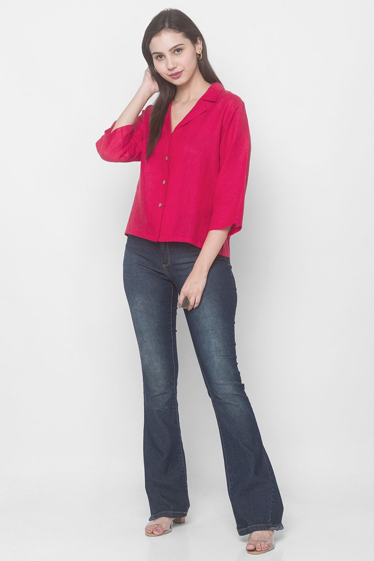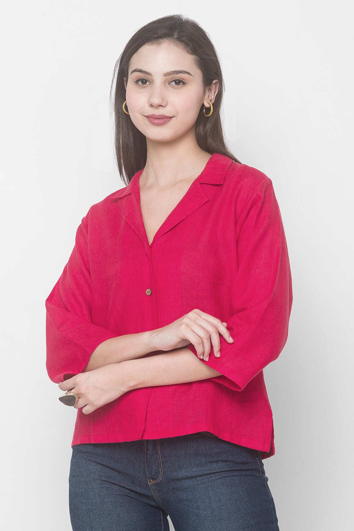 Fuchsia Pink Organic Linen Sport Collar Laelia Shirt