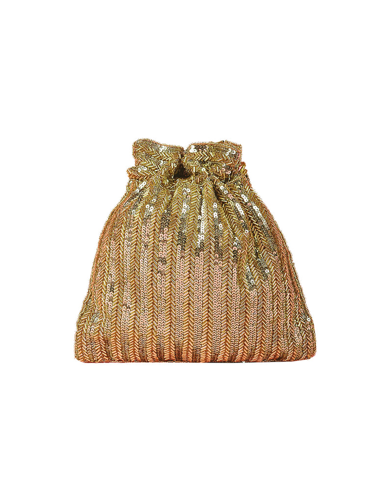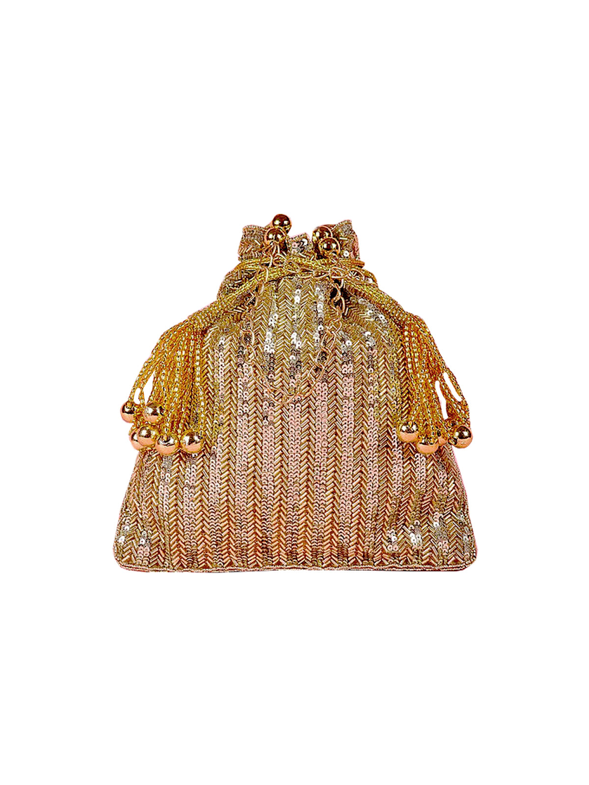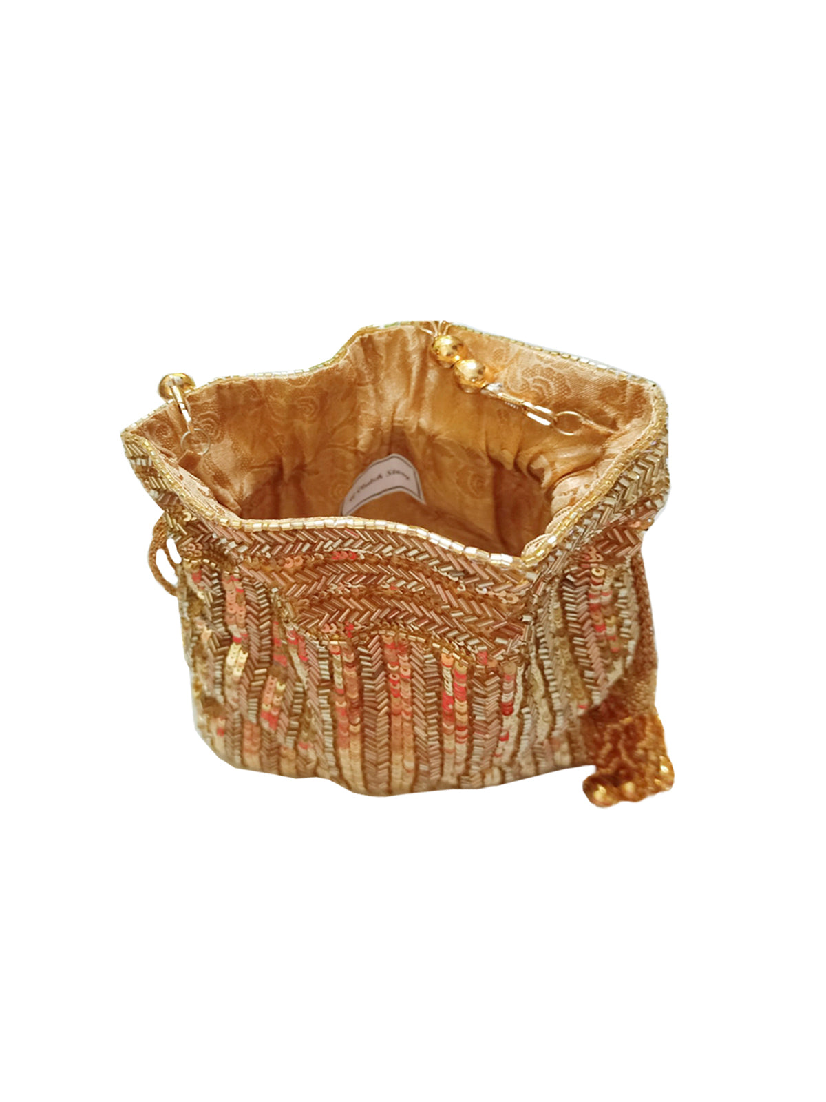 Potli hand embroidered with Gold Bugle beads and Gold sequins work on both sides. .