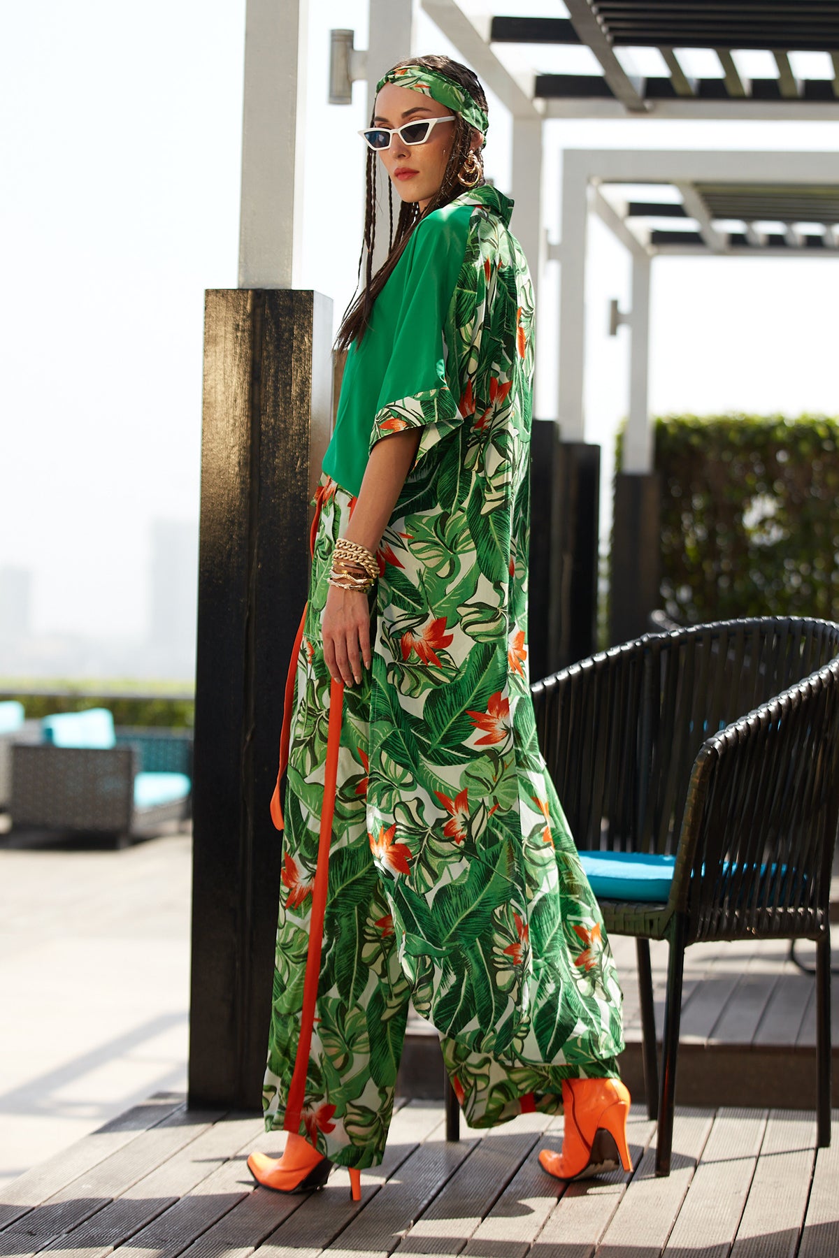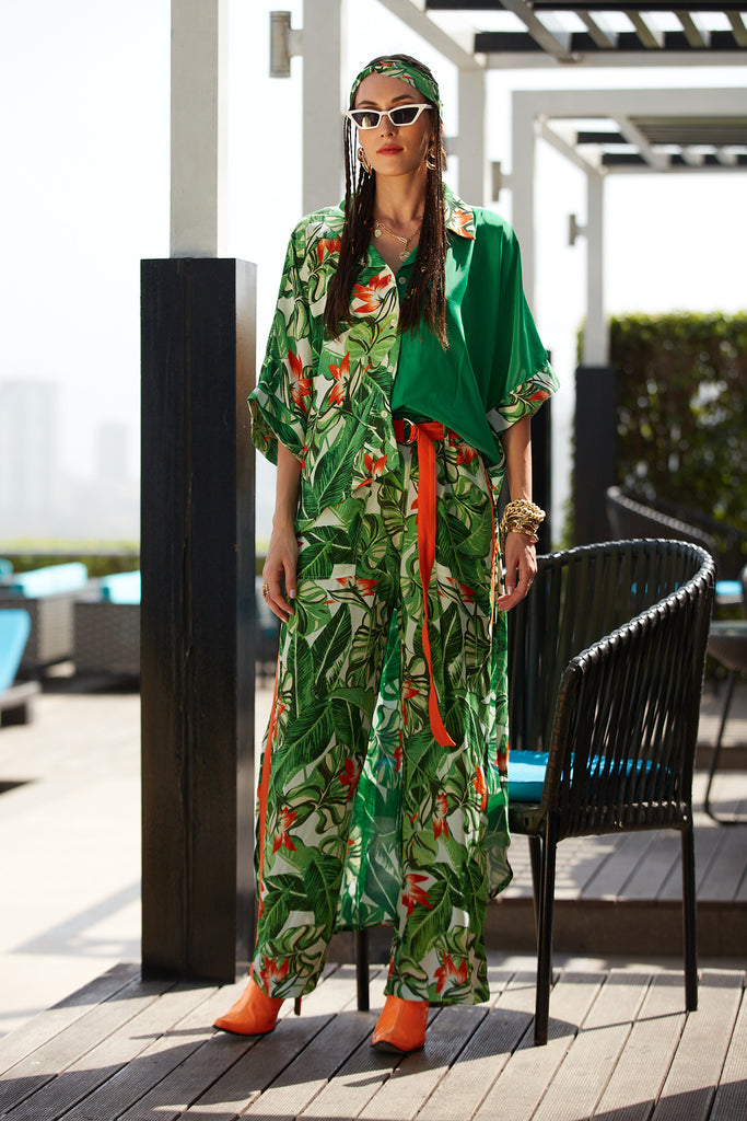 In bold tropical colors, this half printed assymetric shirt is the perfect choice for the summer days.