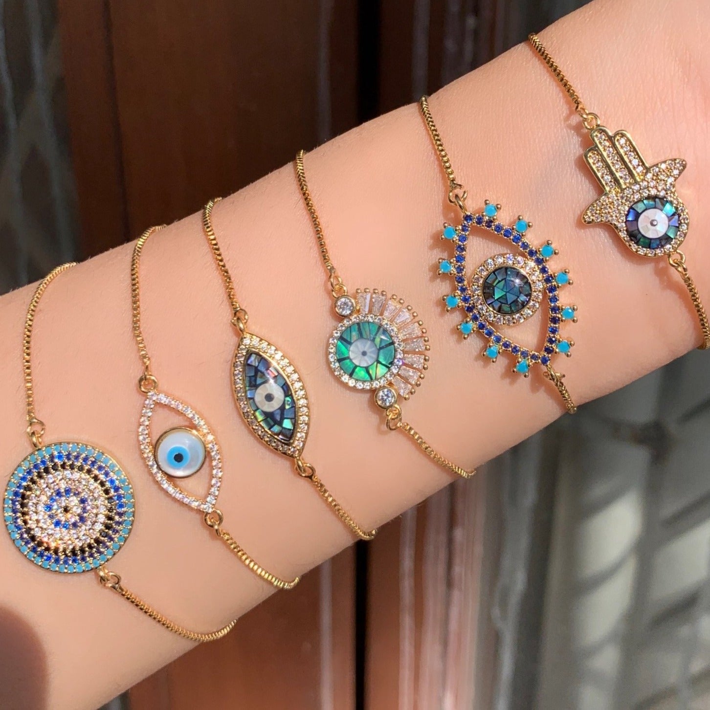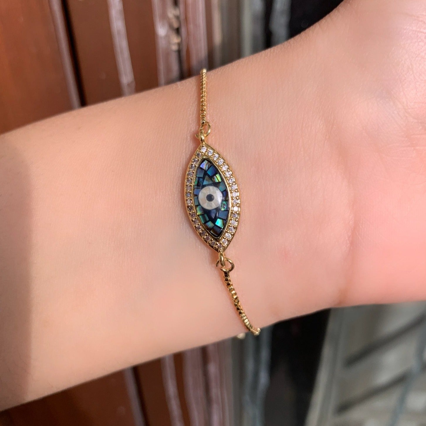 Green Mosaic Evil Eye Charm Bracelet