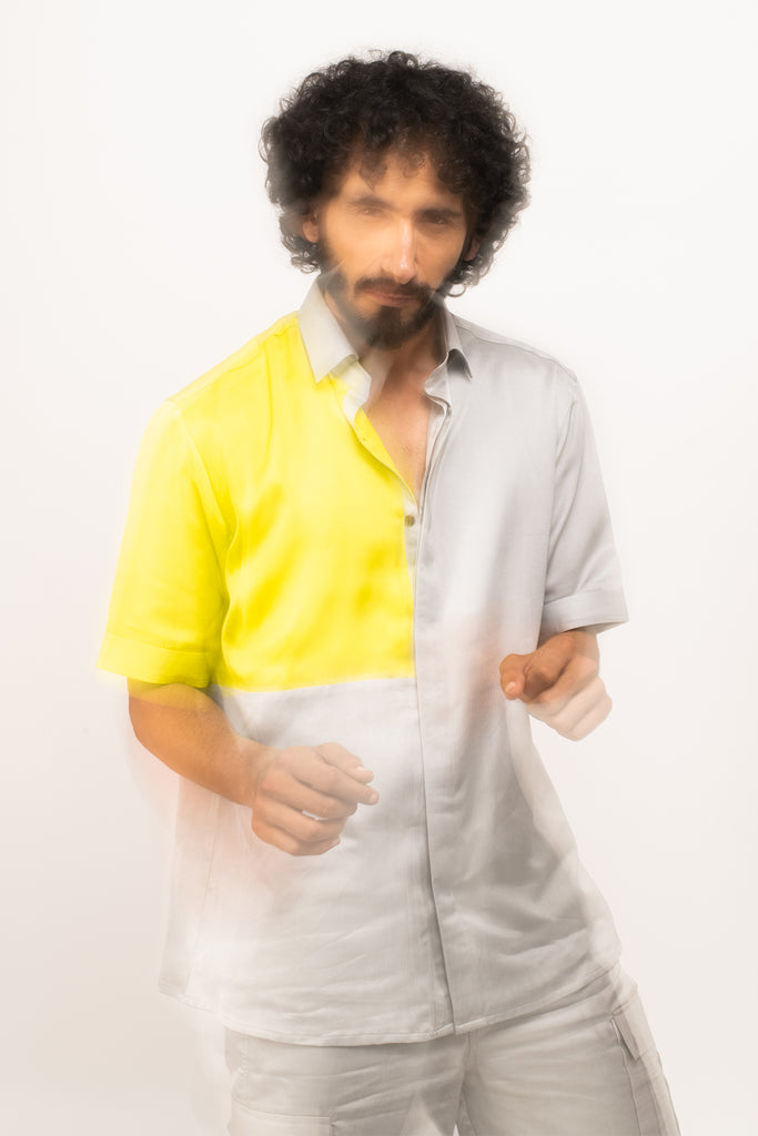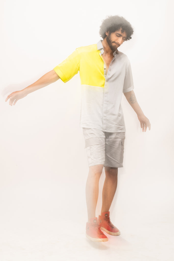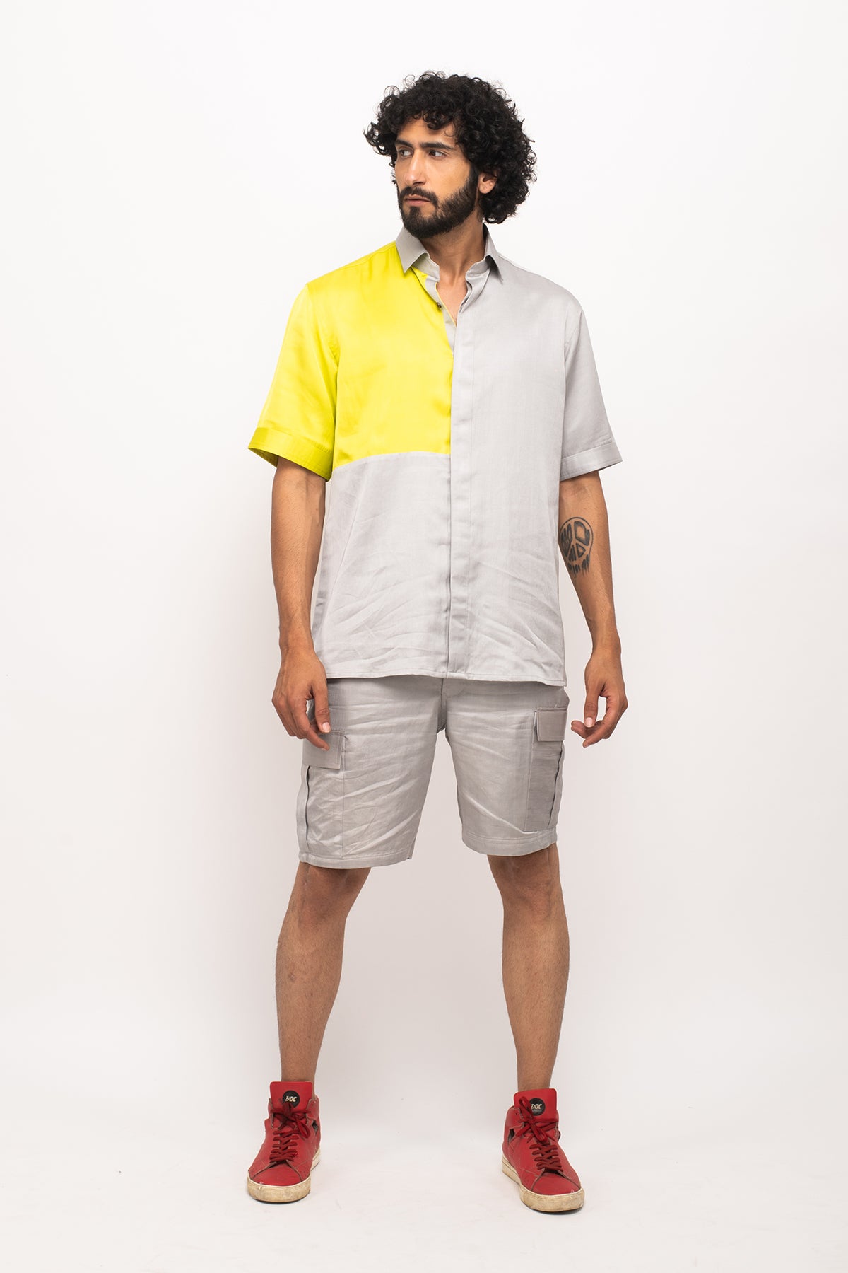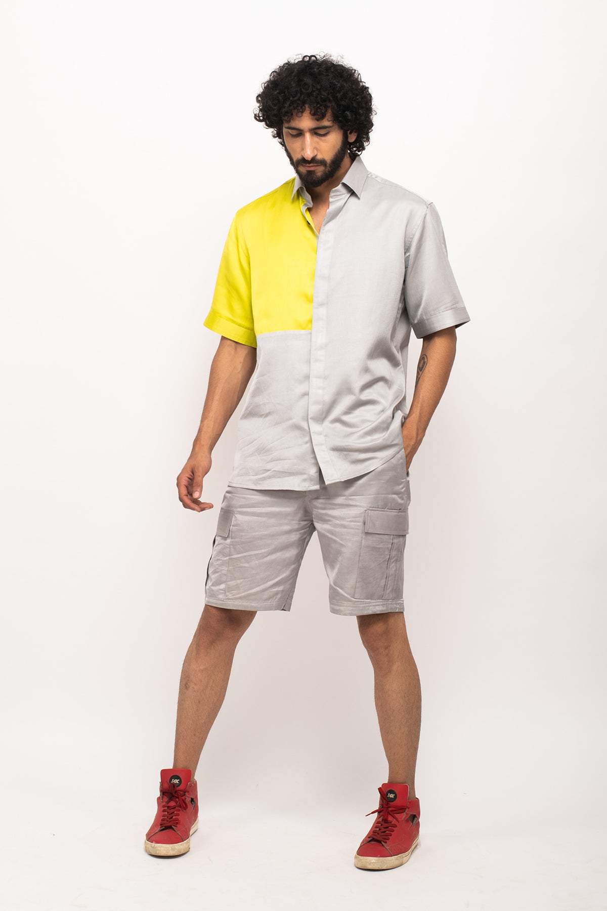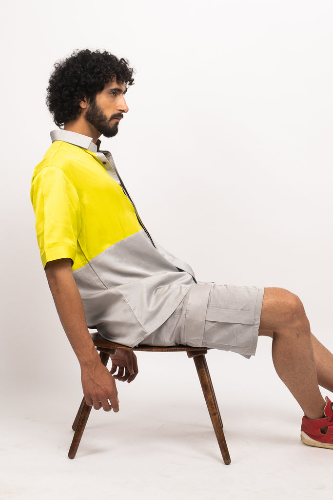 Grey-Neon Colorblocked Shirt.Length of the Garments: 28