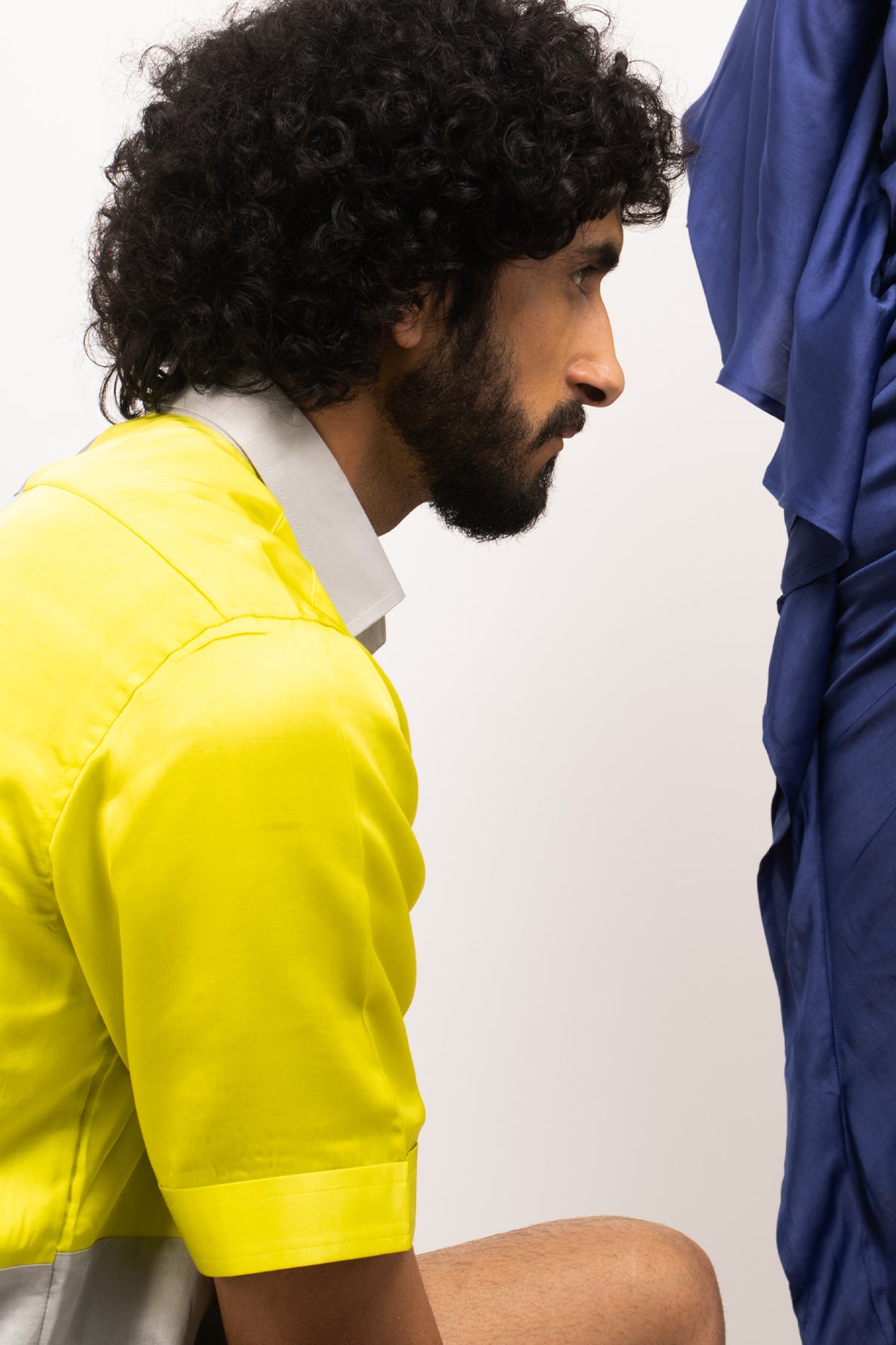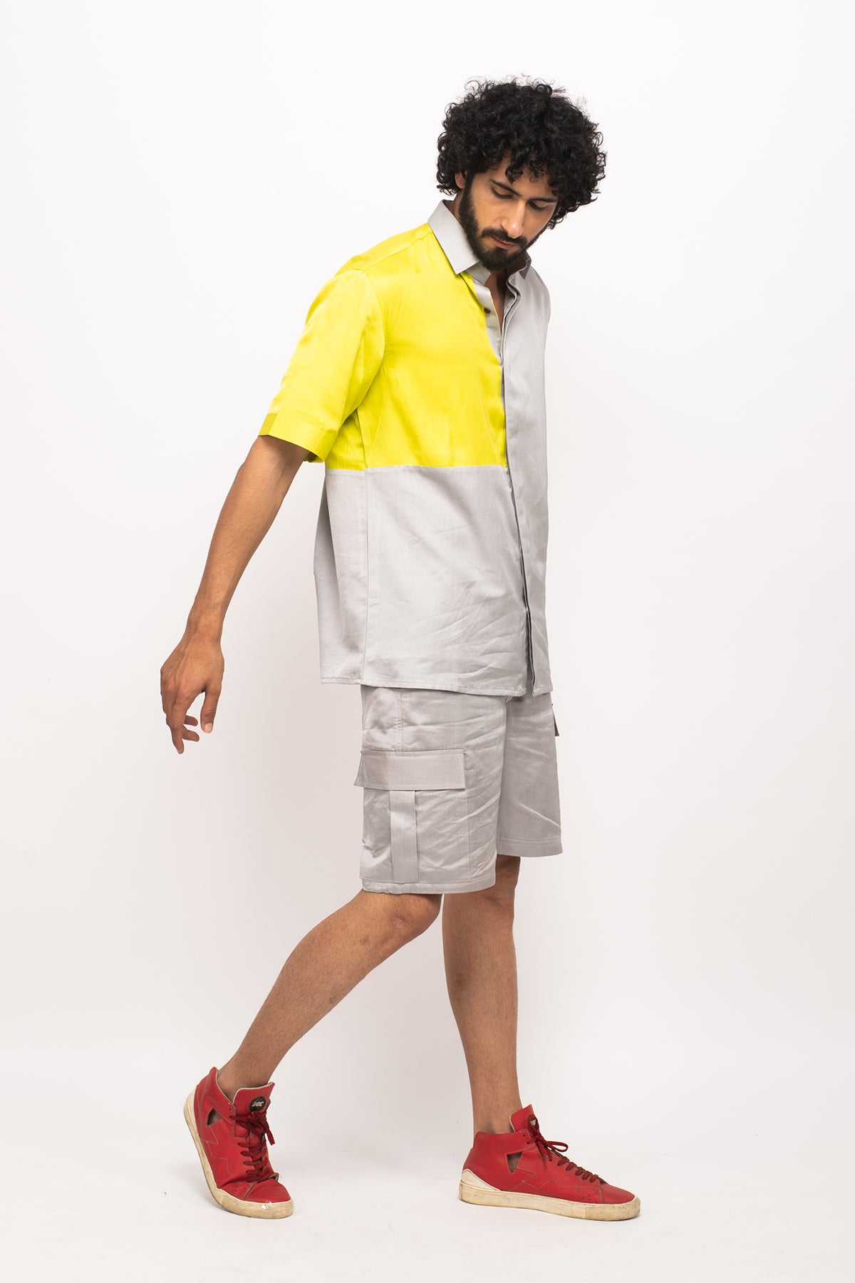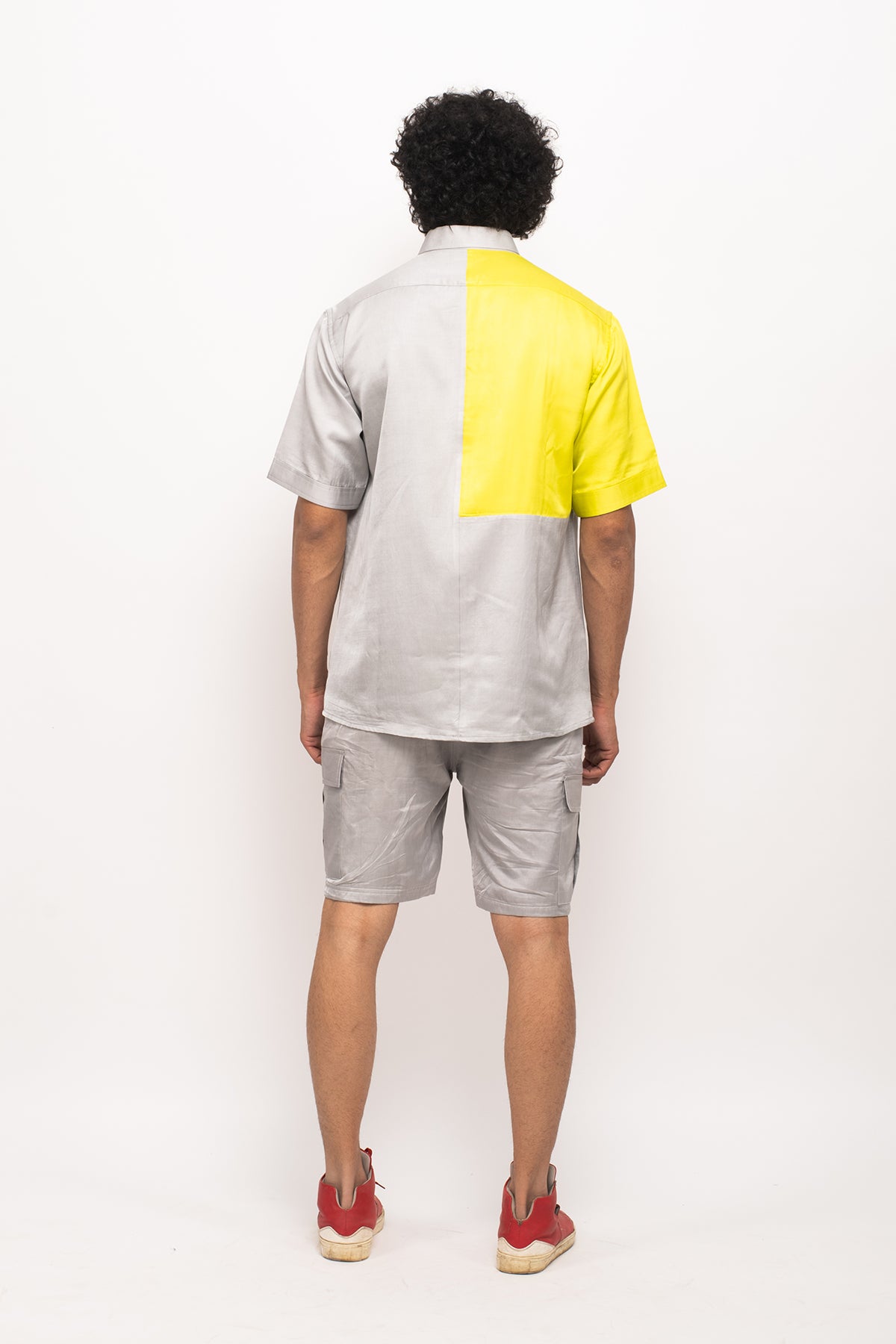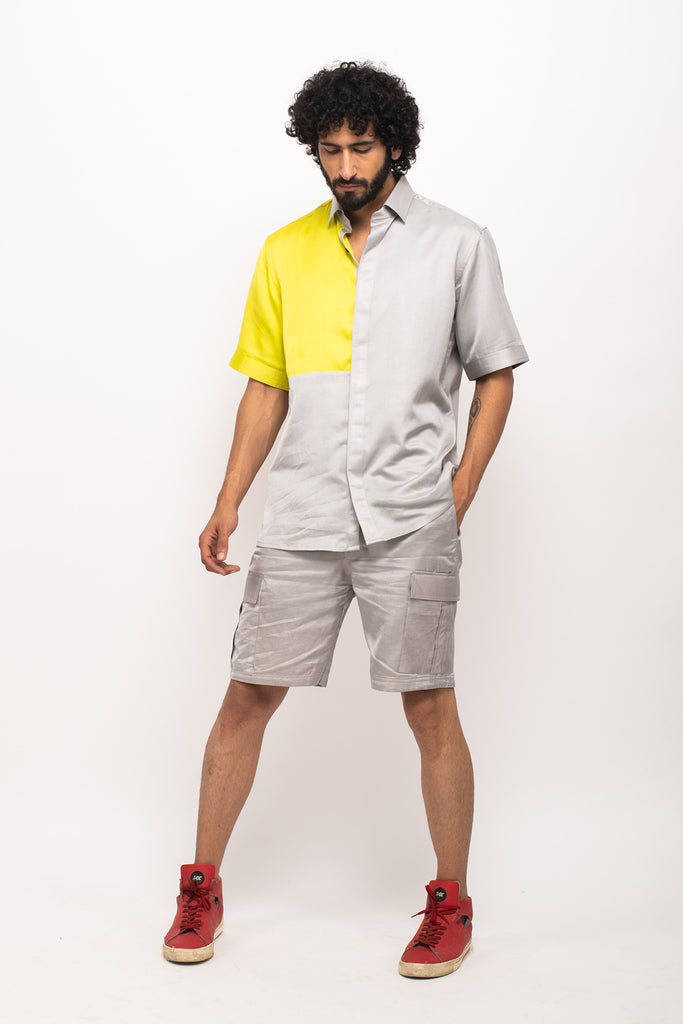 Grey-Neon Colorblocked Shirt.Length of the Garments: 28