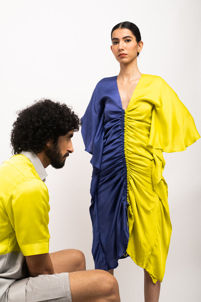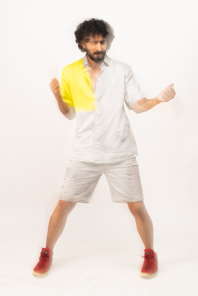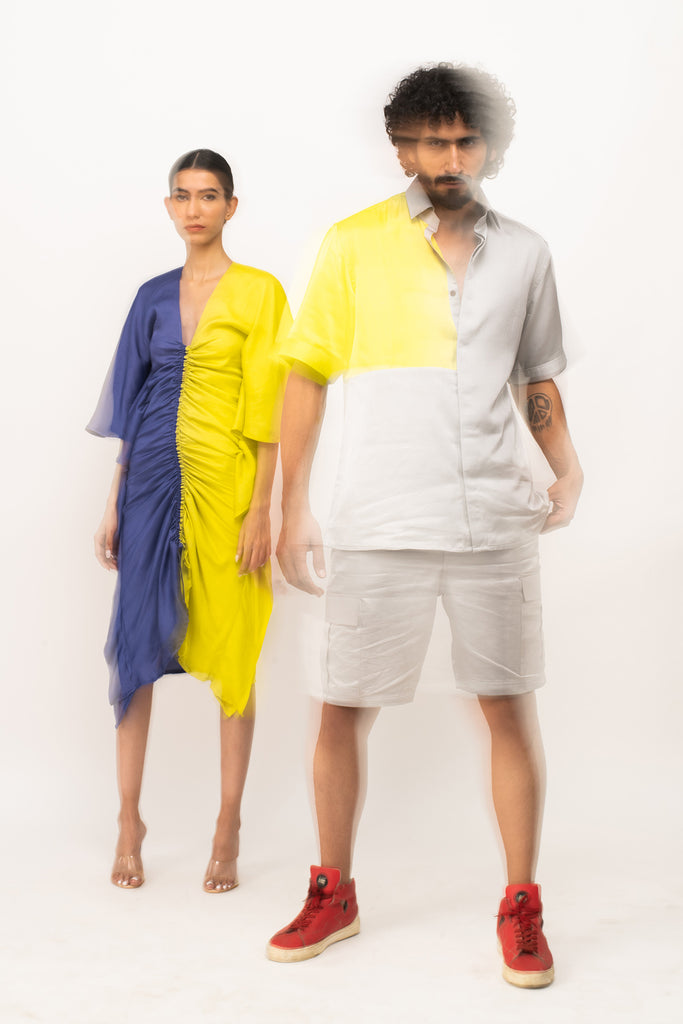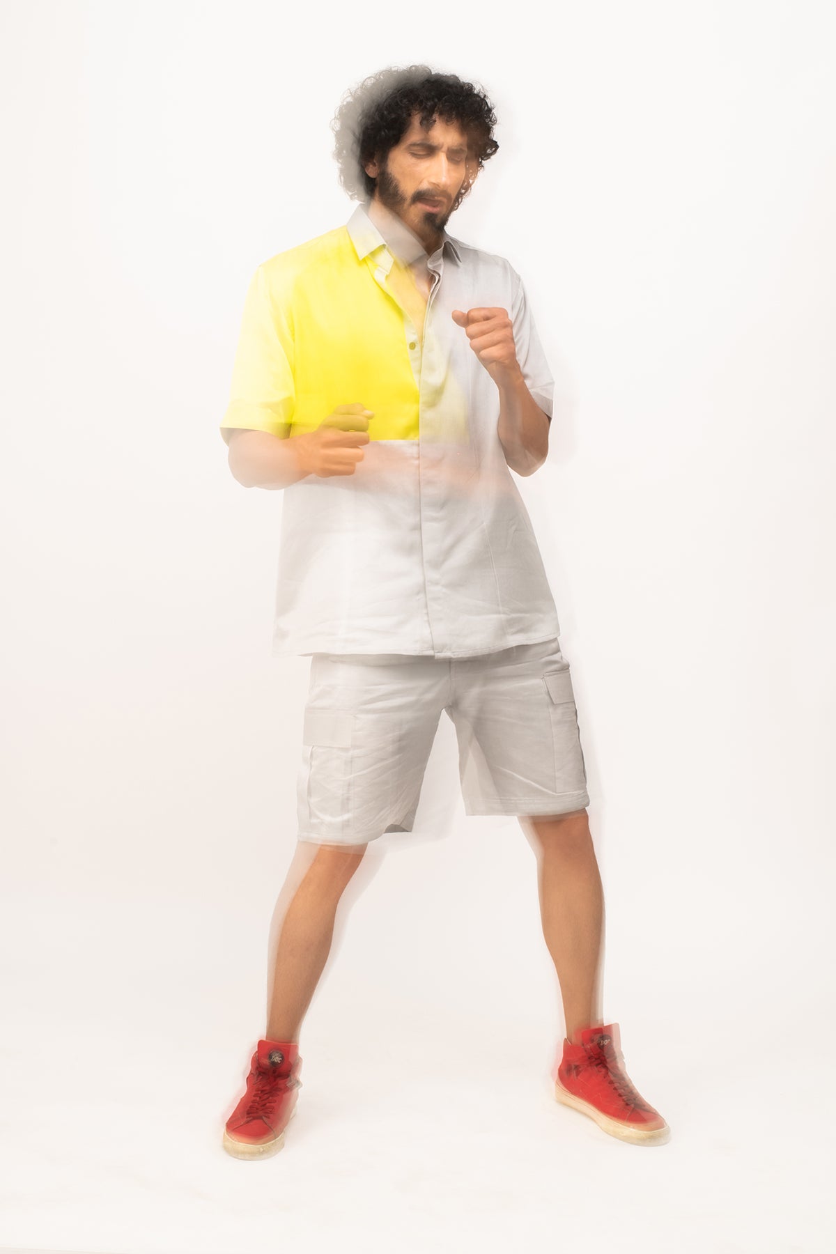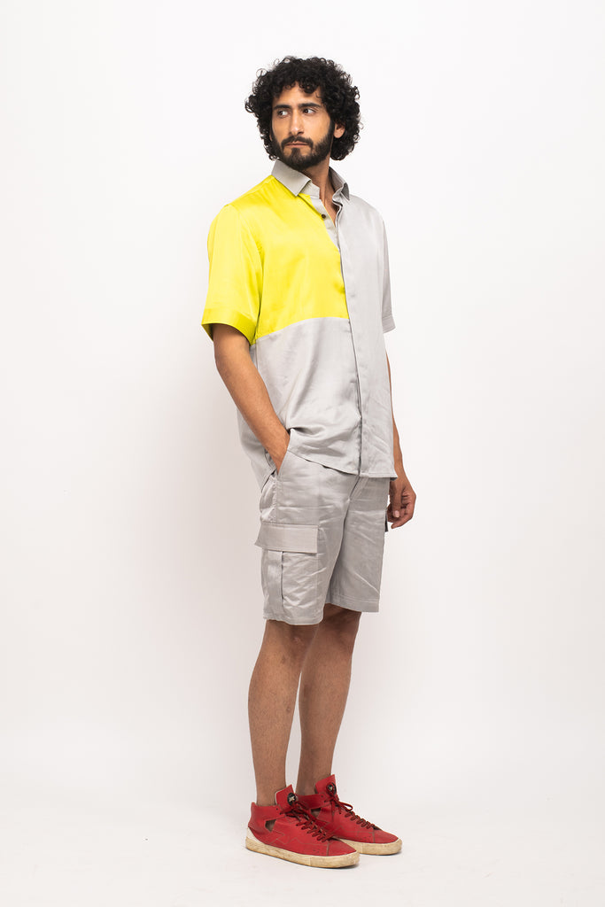 Grey-Neon Colorblocked Shirt.Length of the Garments: 28