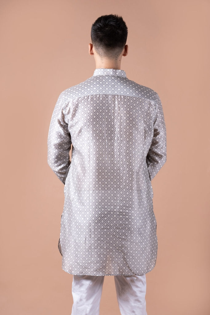 Grey White Self Chanderi Kurta Set