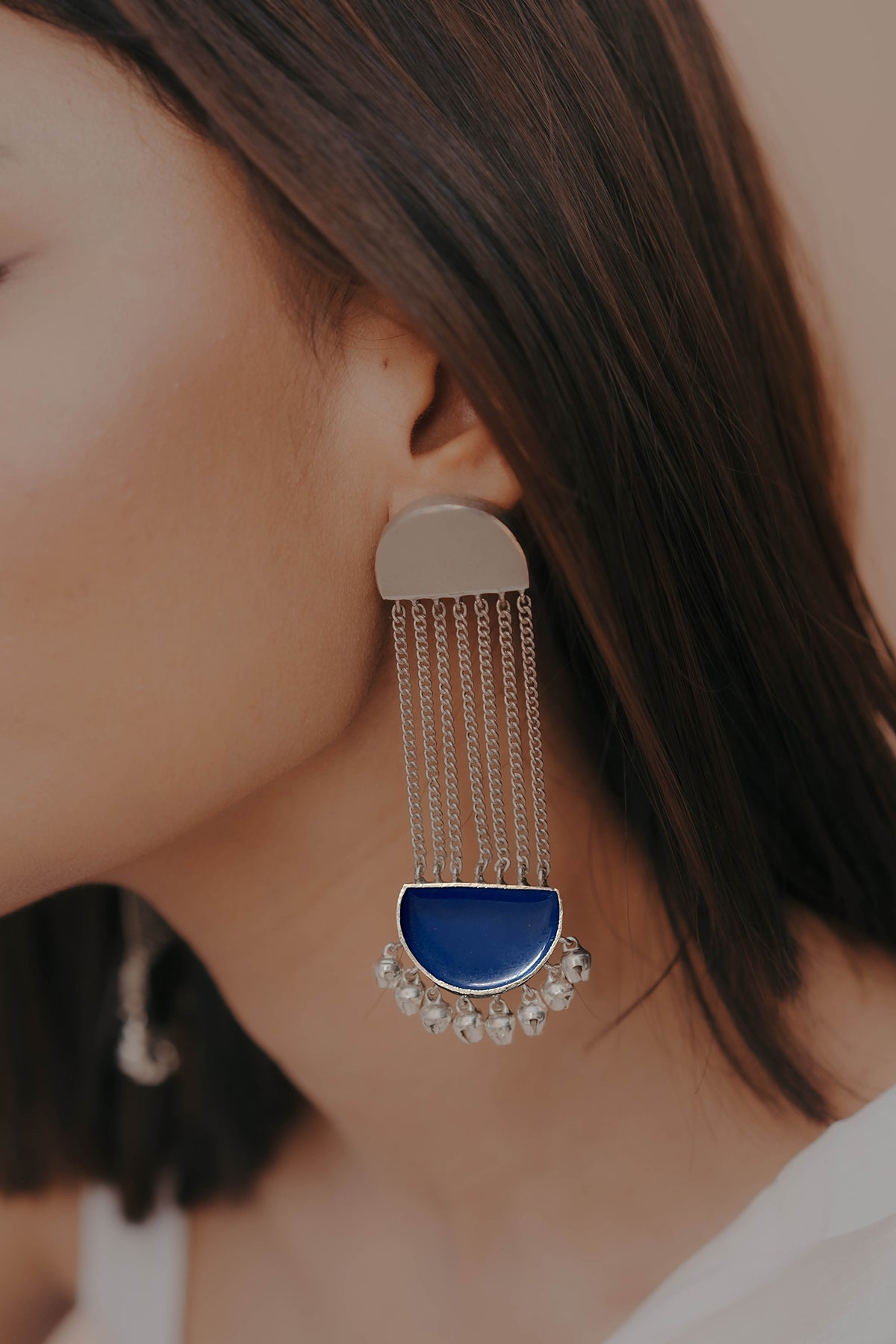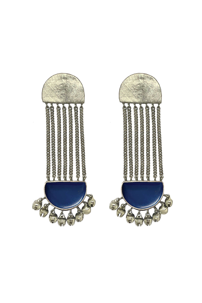 These beautiful pair of earrings are handcrafted to perfection using fine quality brass, ghungroos and black enamel with light silver plating on it. Traditional look with modern simplicity is what these earrings has to offer.