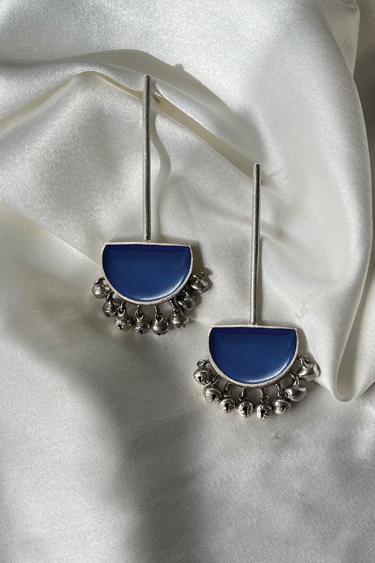 These beautiful pair of earrings are handcrafted to perfection using fine quality brass, ghungroos and black enamel with light silver and plating on it. Traditional look with modern simplicity is what these earrings has to offer.