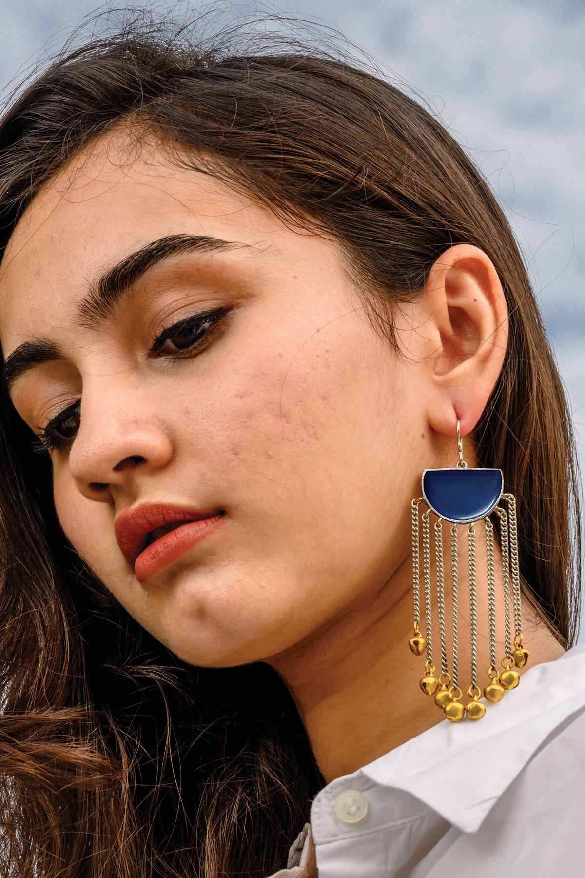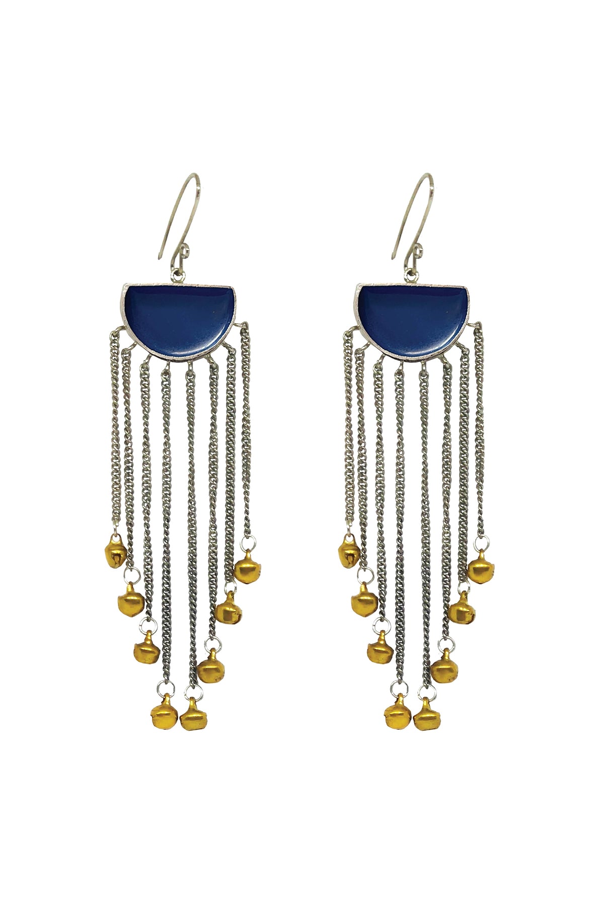 These beautiful pair of earrings are handcrafted to perfection using fine quality brass, ghungroos and black enamel with light silver and gold plating on it. Traditional look with modern simplicity is what these earrings has to offer.