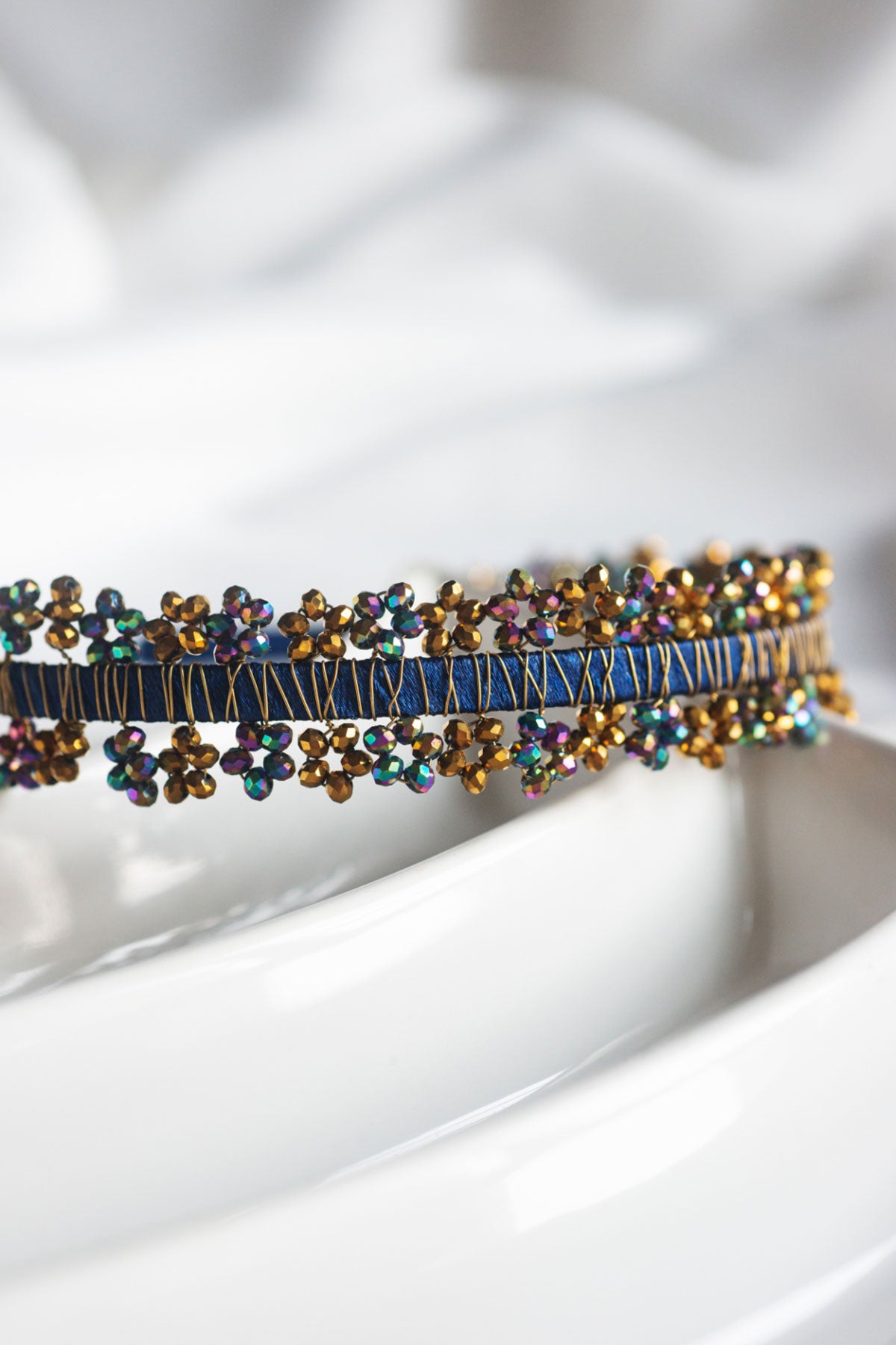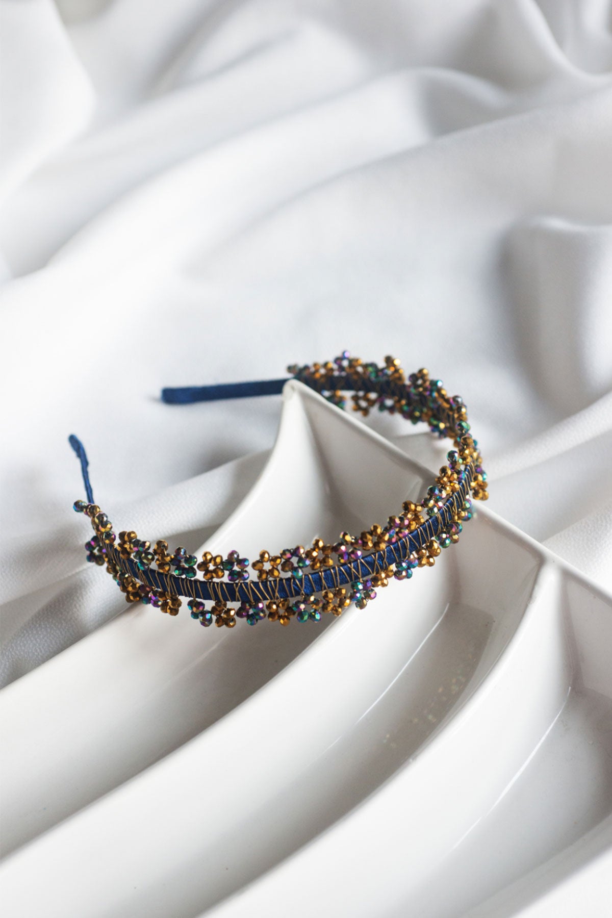 A statement piece for the bold and beautiful, the fine Crystal beading and Golden thread weaving is a Luxury statement only for the best.