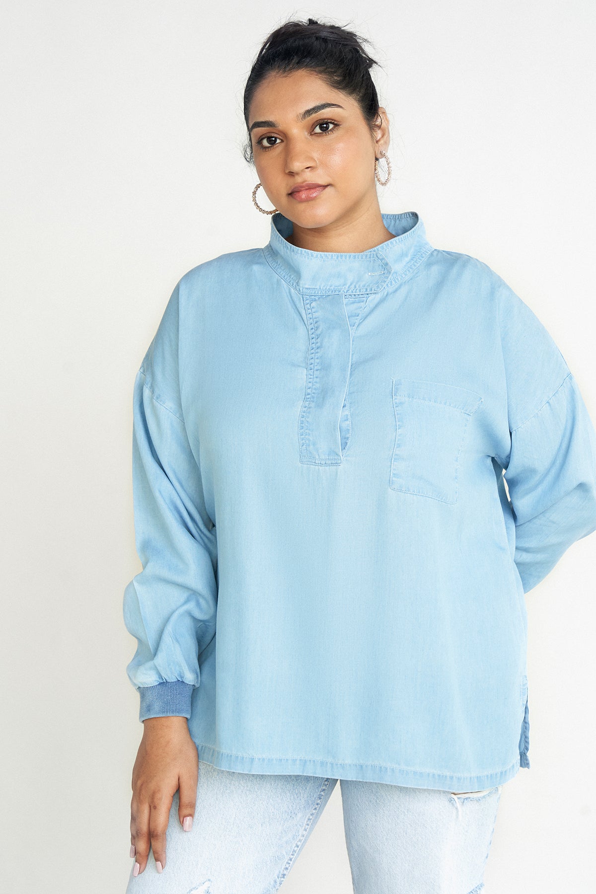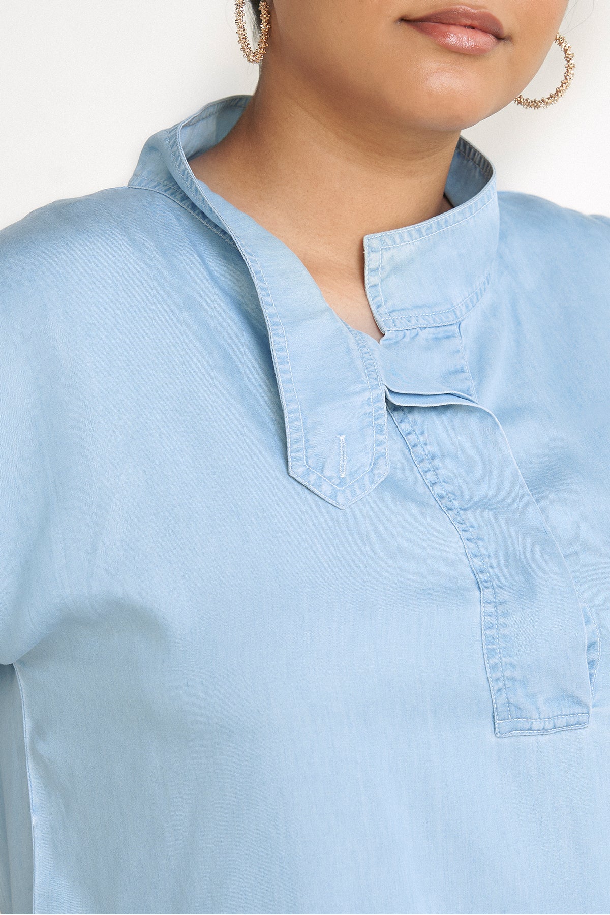 A versatile shirt, you can wear the collar up or down depending on your style. Made with sustainable, biodegradable fiber, this shirt offers a conscious style that feels great.