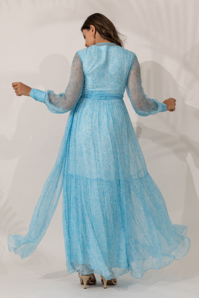 Grace the beach with this mountain-flower-inspired blue wrap-around dress. The calming blue adds to the comfort of the viscose-chiffon fabric that lets you let loose on the sands. It comes in a set of two, with an A-line dress as an inner, and a flared wrap-around maxi dress that can be tied. The best part? You can style it your way - as a dress, a coverup or a flowy summer shrug.