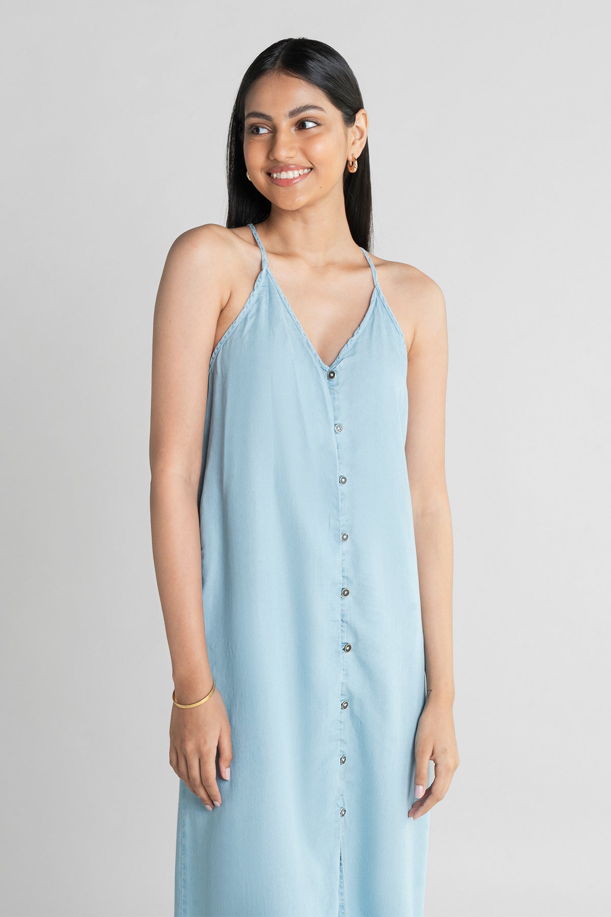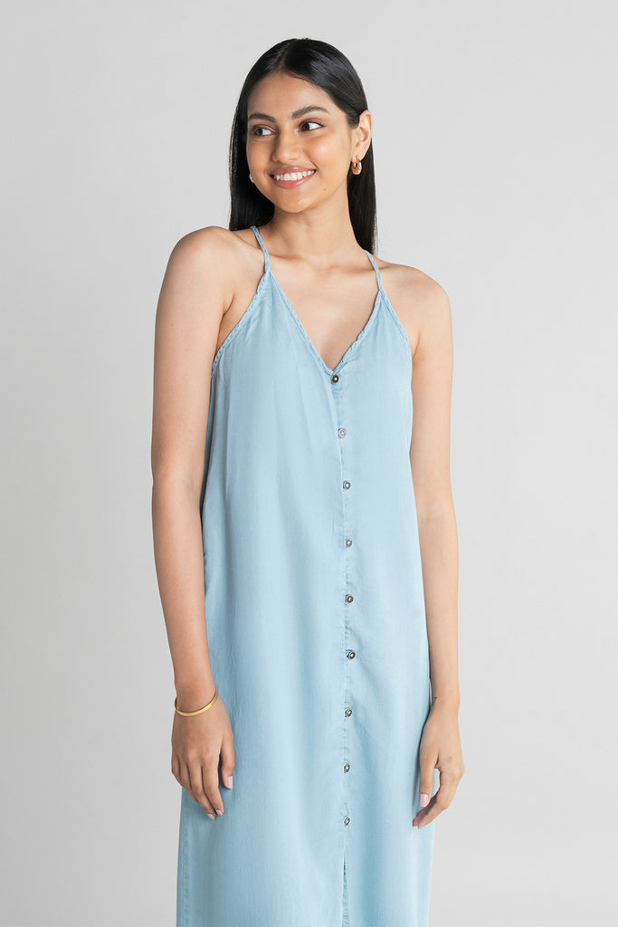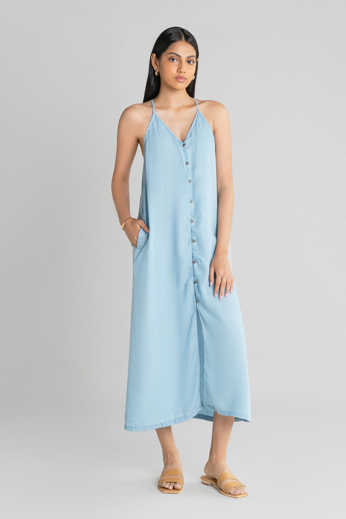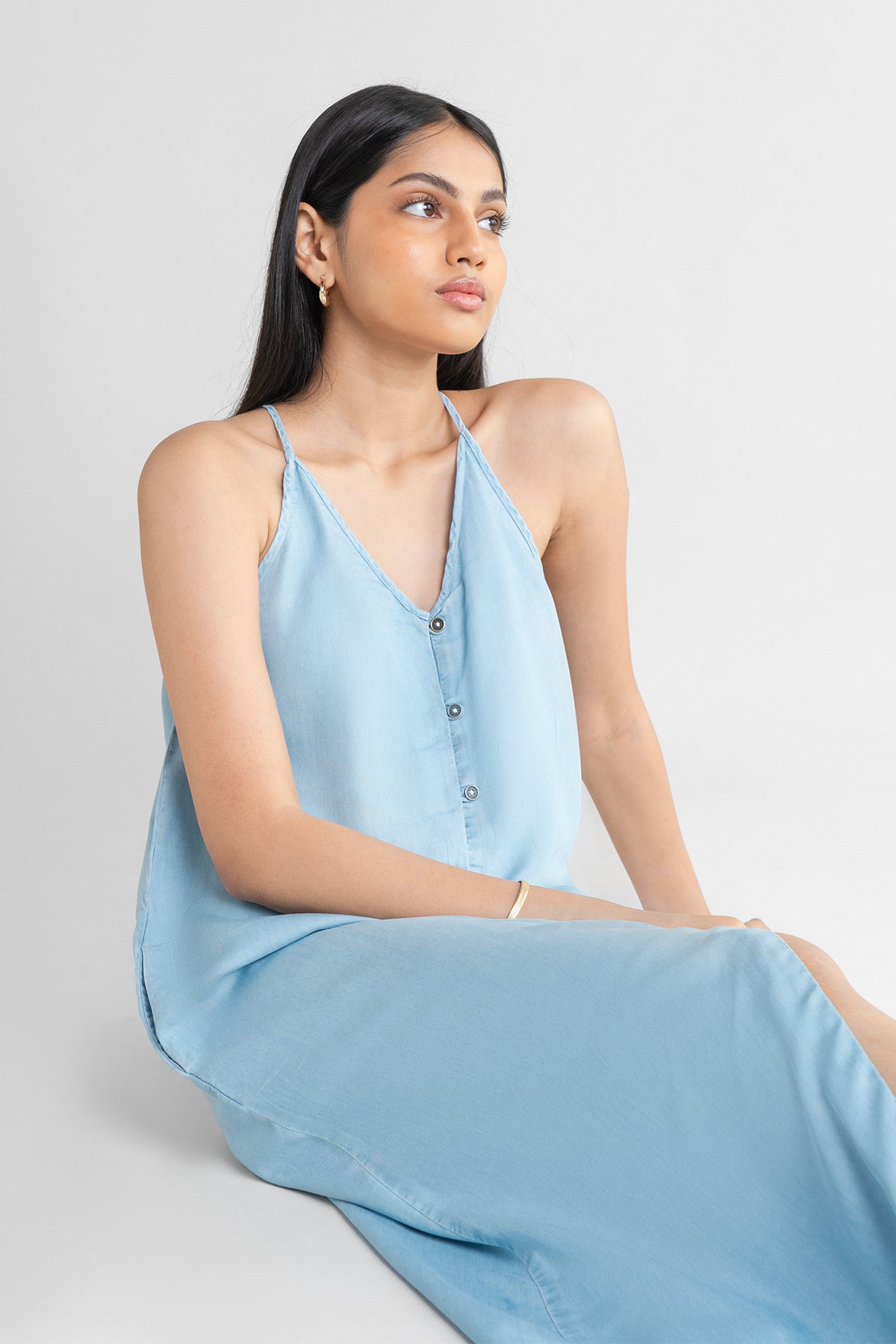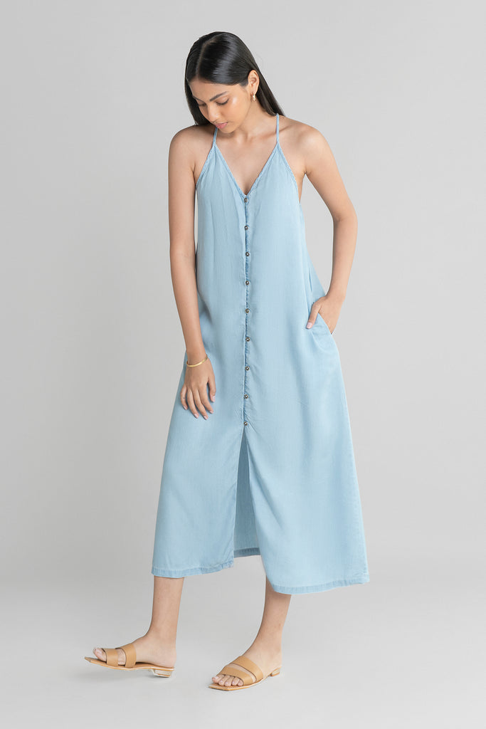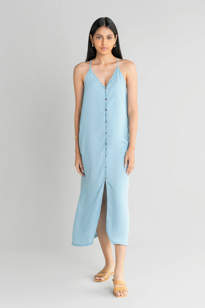 It’s so easy to dress this slip dress up or down! Simply add heels and a belt or sneakers and a top knot to suit your style. The adjustable strap and slit in front add classic details we love.