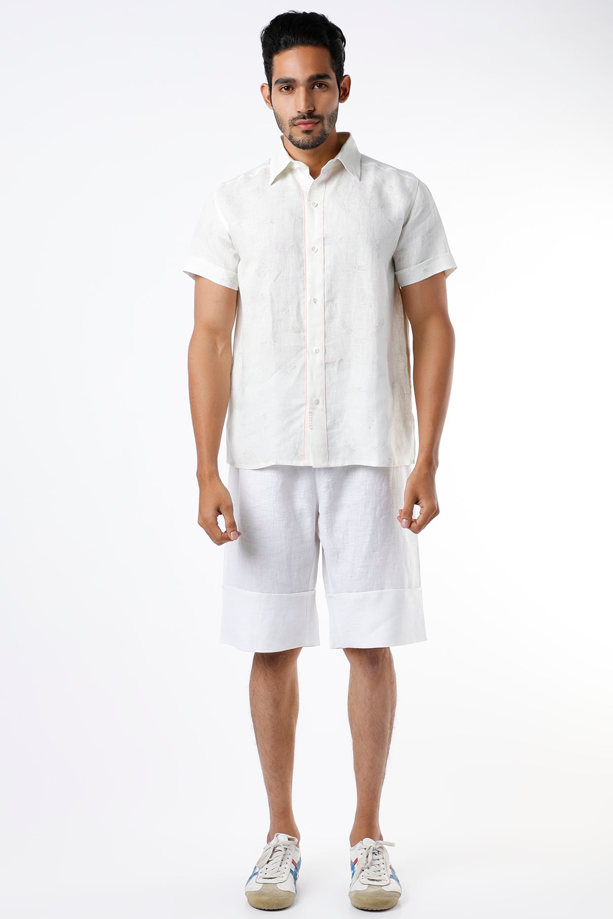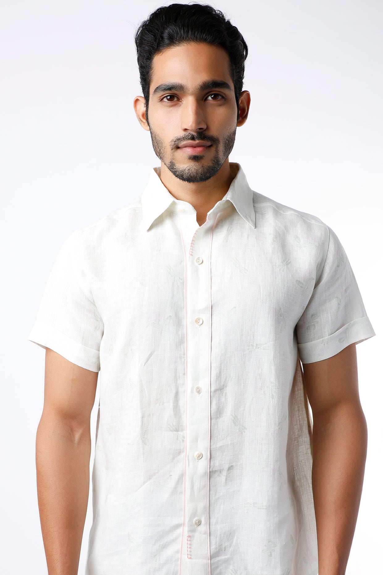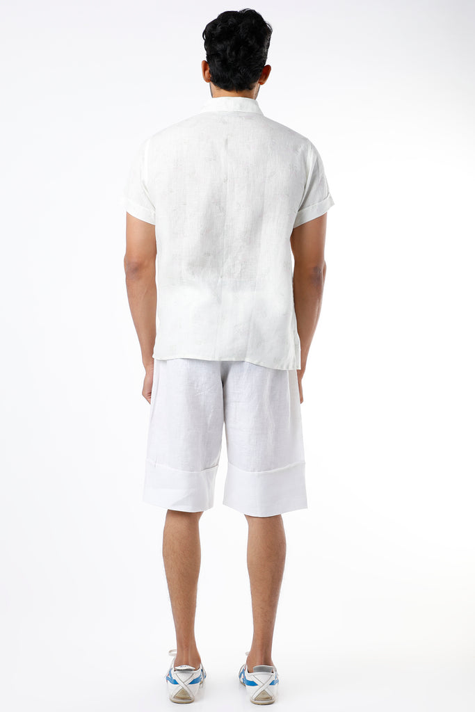 Featuring an ivory shirt in linen base with half sleeves and digital print. This contains only one piece.
