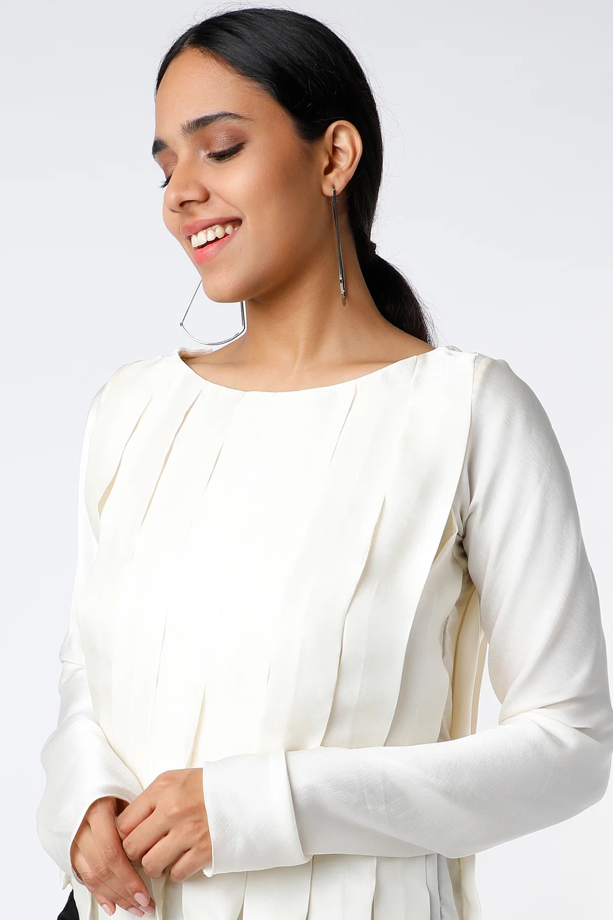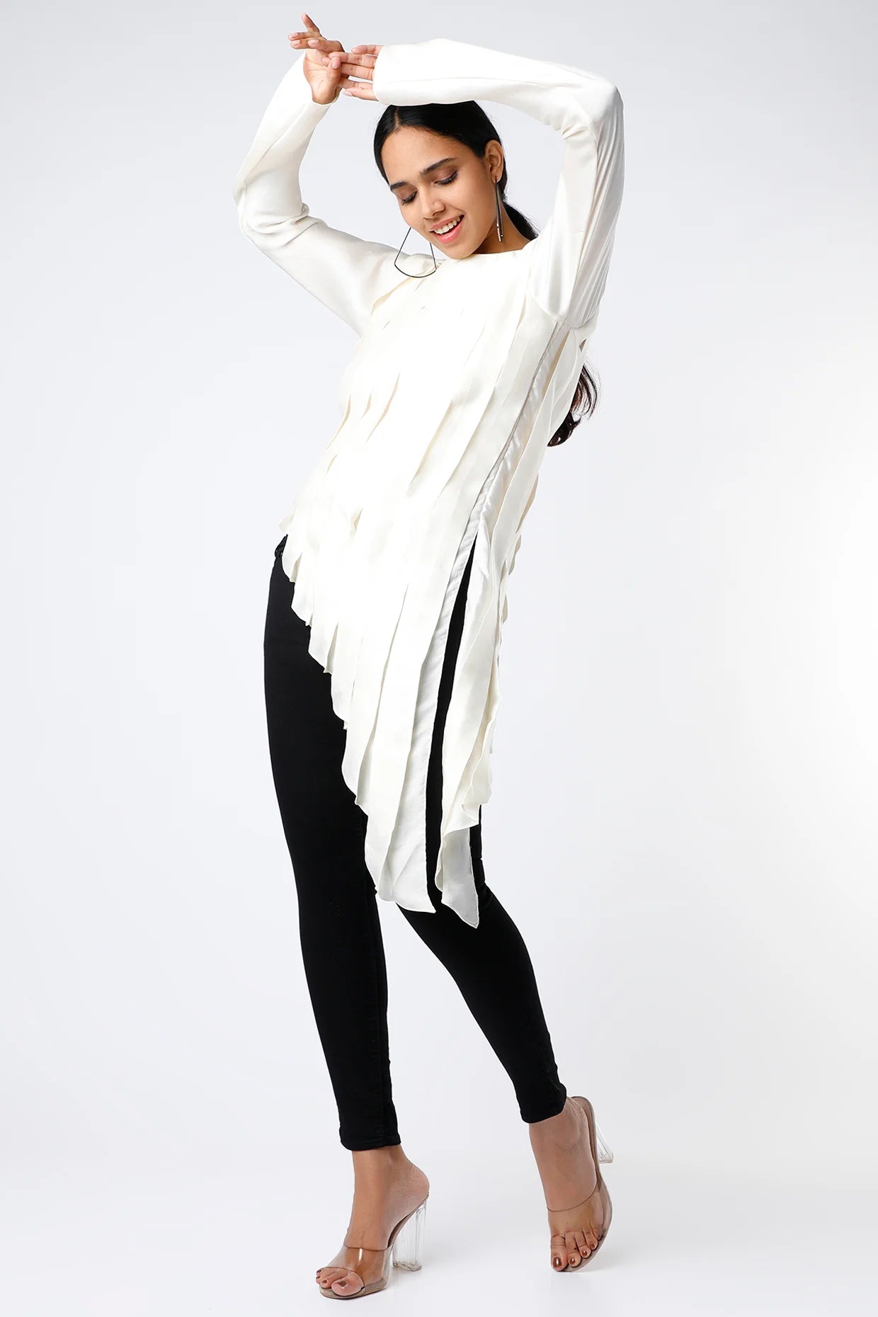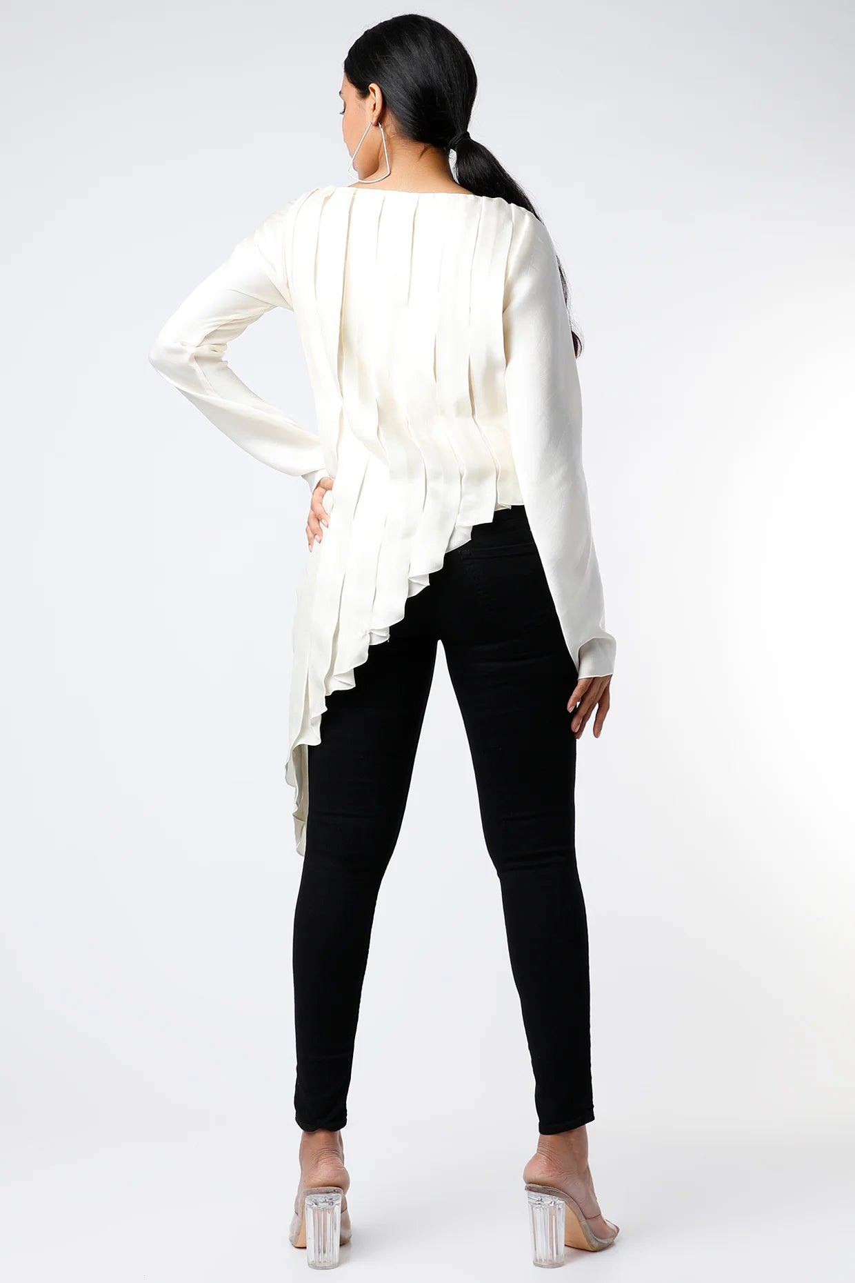 Featuring a Ivory Pleated asymmetric Top. This contains only one piece.