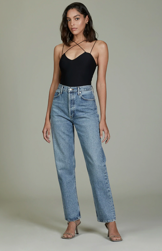 This Jersey Monokini with criss cross detailing across the chest features a thong back and snap closure for comfort and ease. Fits true to size. Model is wearing a size Small in Black.
