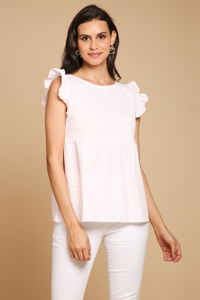 The weather is warming up and you can't stop us from living our best lives in the sunshine! Flirty and flattering the Lea Striped Top is a versatile top in a stunning seersucker fabric. We are obsessed with the frill style straps and super cute, tie-up back! Perfect for a girls' day out, mimosa brunching and laughing till it hurts. Style this top with some cute denim jeans, a white sneaker, and some gold hoops or a hat for a fun pop!
