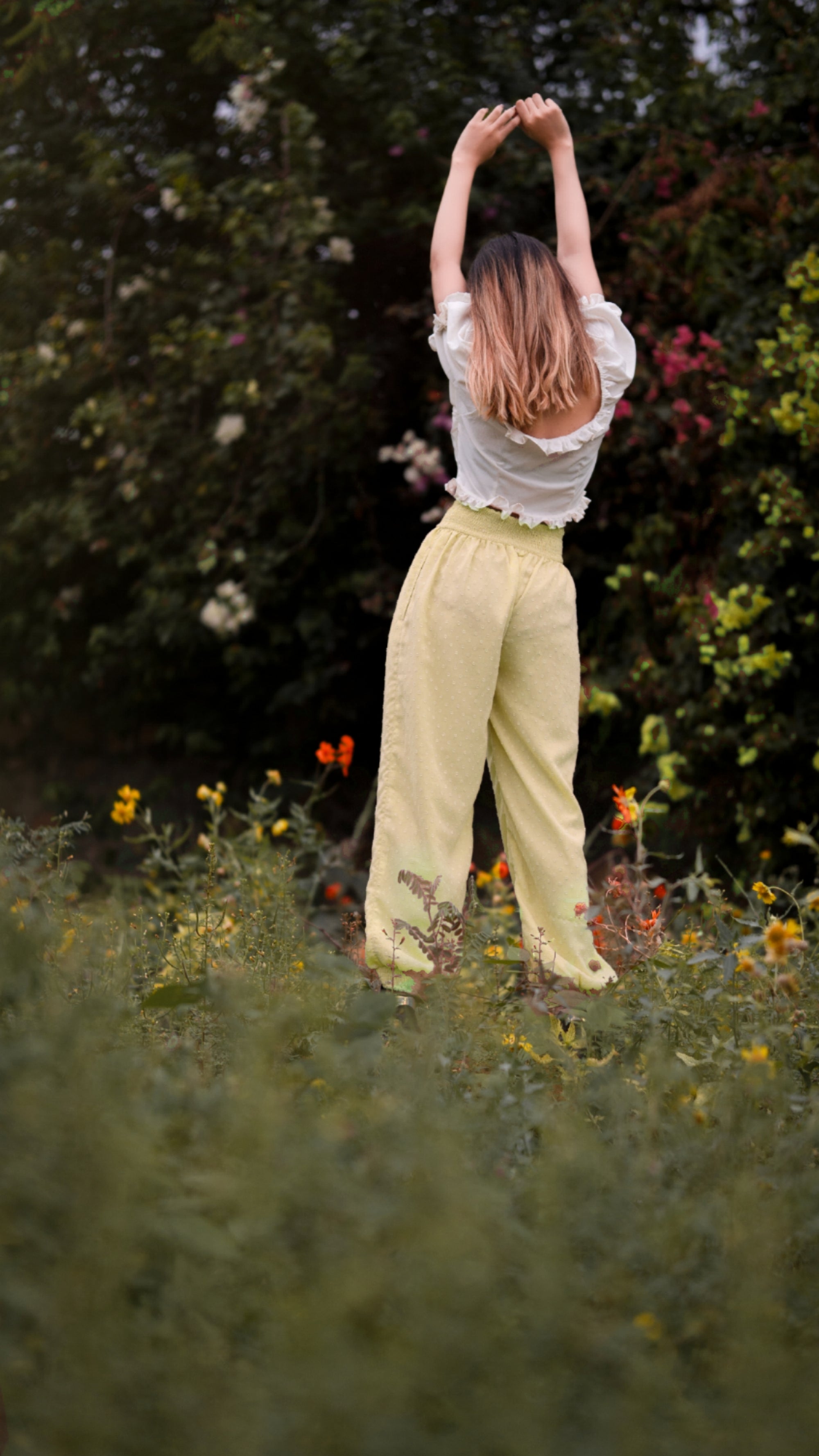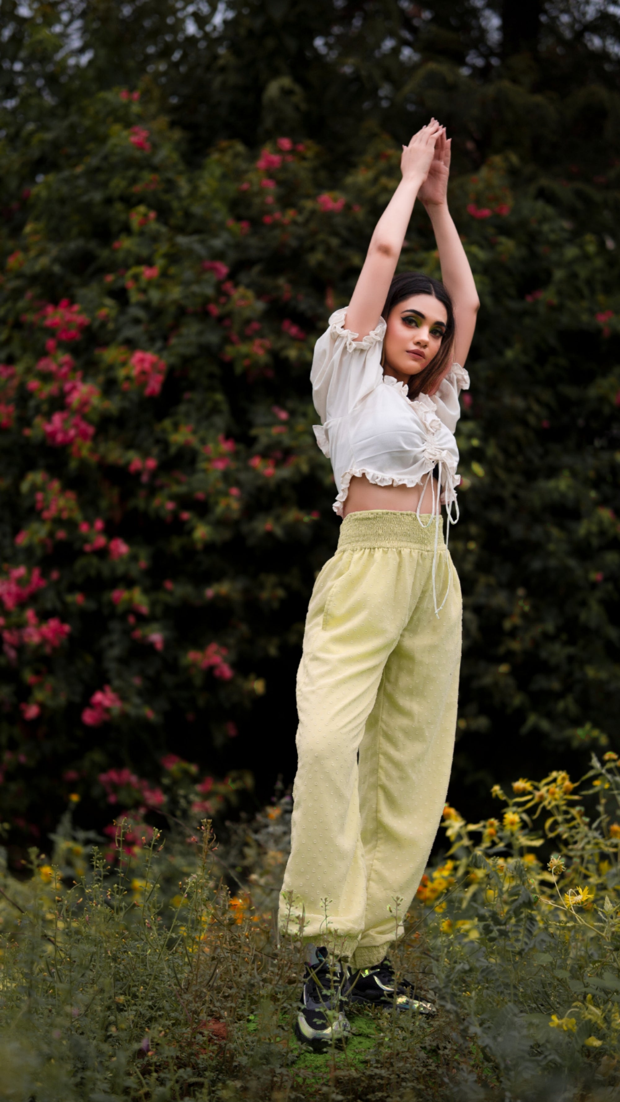 This very unique and stylish lemon yellow smocked joggers,is handcrafted with very soft and luxury fabric, it features side pockets, elasticated smocked hems and broad smocked waistband which acts as a perfect tummy tucker.