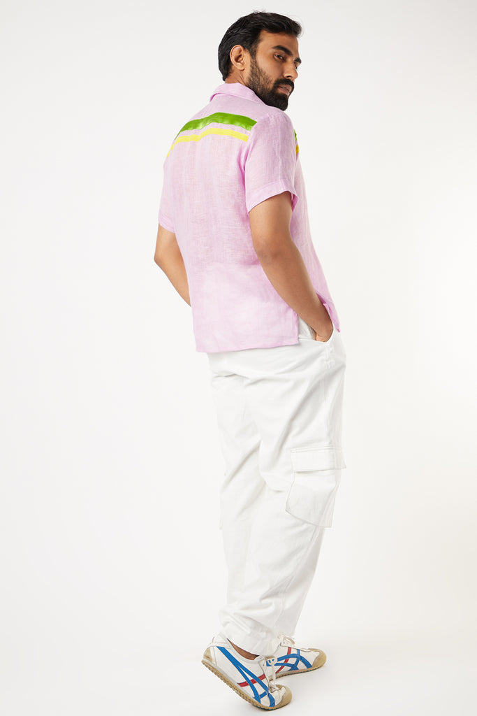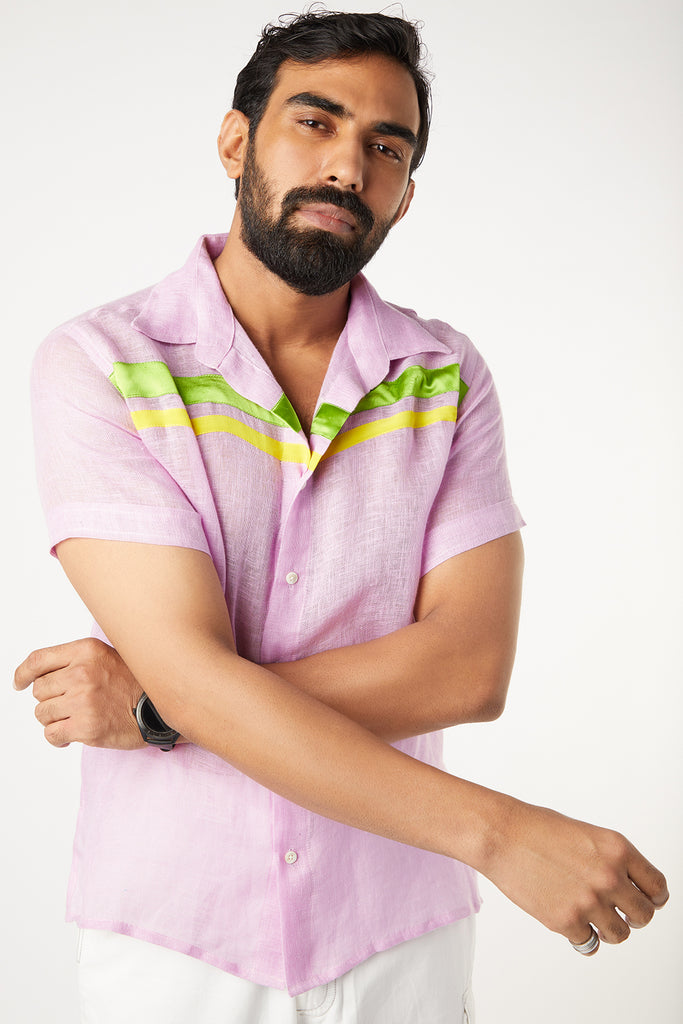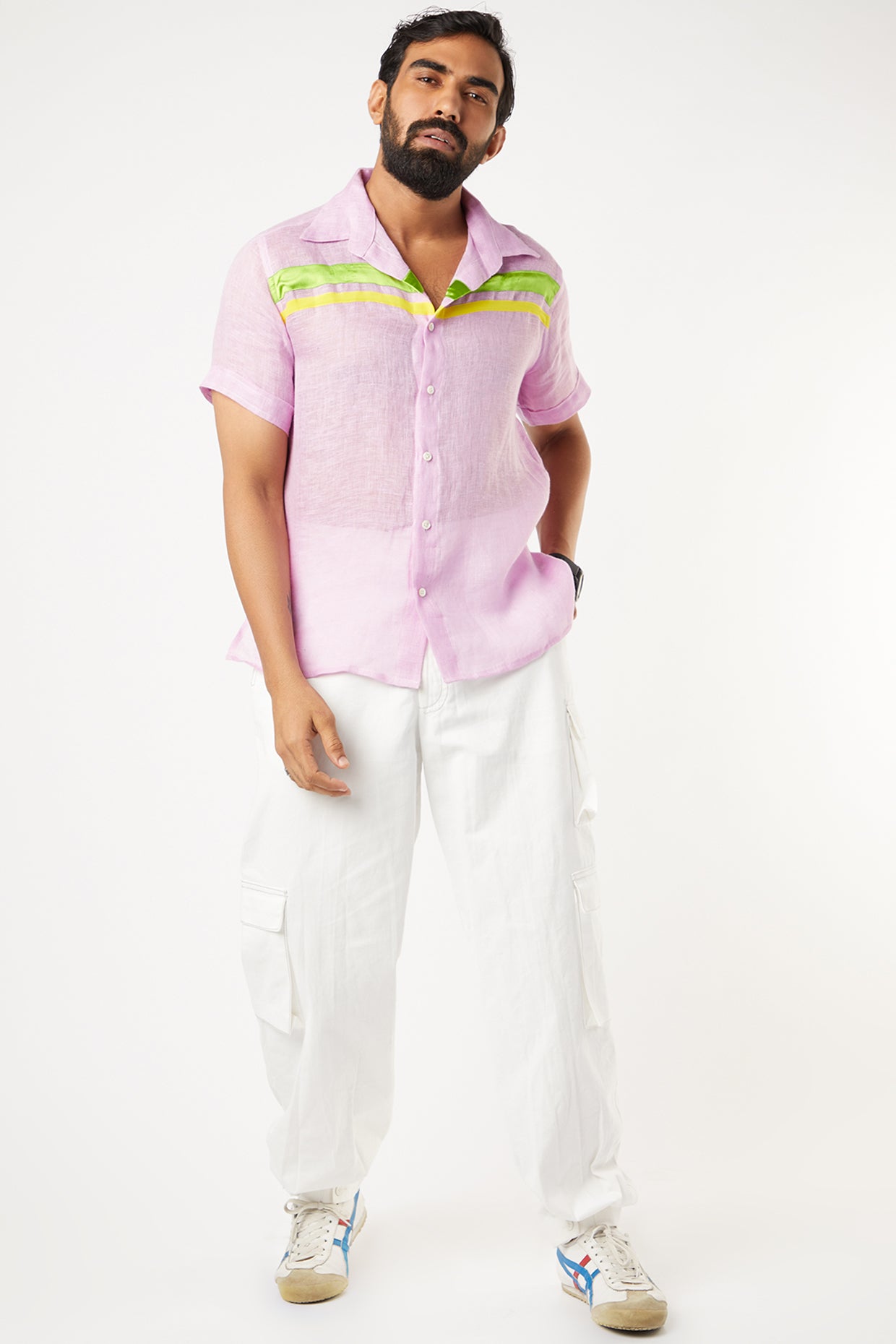 Featuring a Lilac shirt in gauze linen base with short sleeves. This contains only one piece.