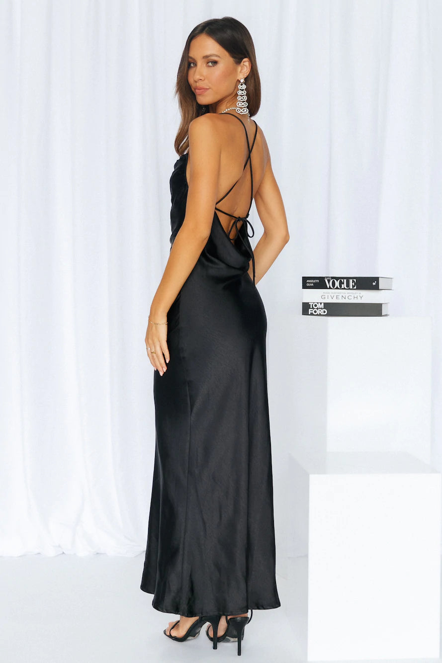 You'll be Kissin All Night in this luxe maxi. Featuring a sweetheart neckline with a lace-up back and a long flowy skirt. You will dazzle the crowds all night long! Style with heels and statement earrings.