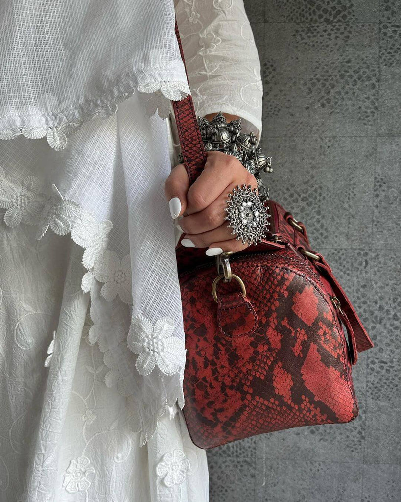 While bowler bags are loved by many for their aesthetic appeal, what they ace in is convenience and fashion statements. The detail given to the design is also worth every consideration! It’s a perfect bag for your weekend visits! It also comes with a removable shoulder strap and can be carried perfectly with a casual look.