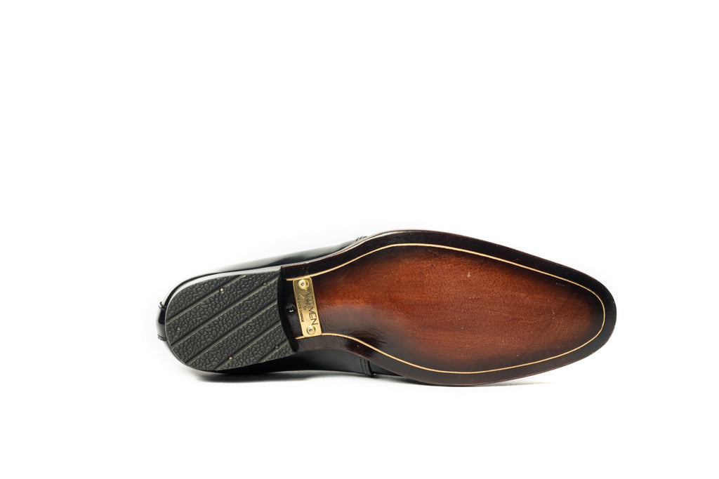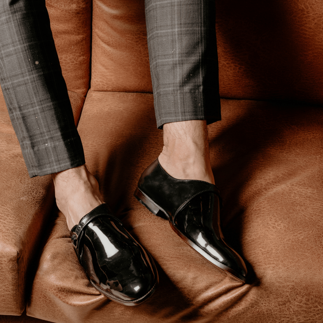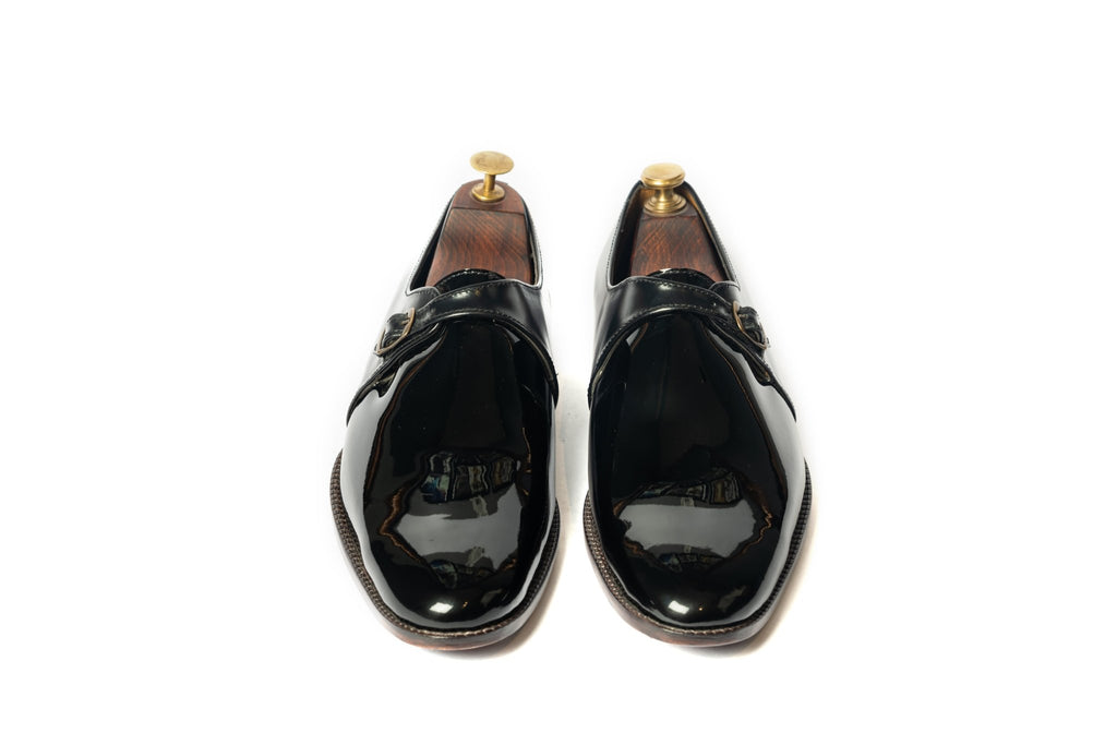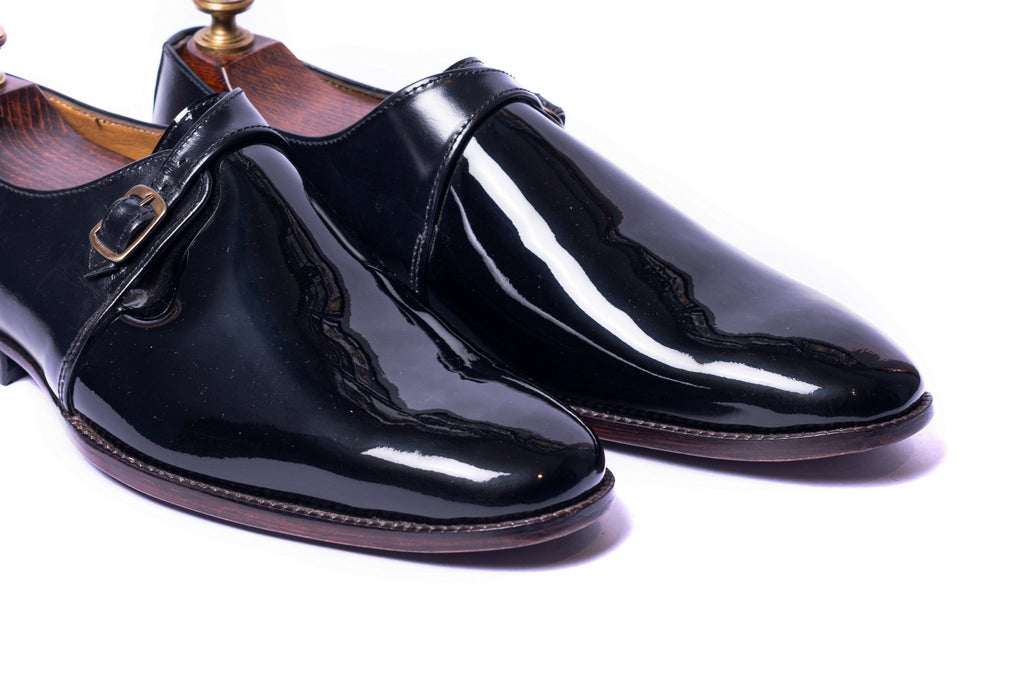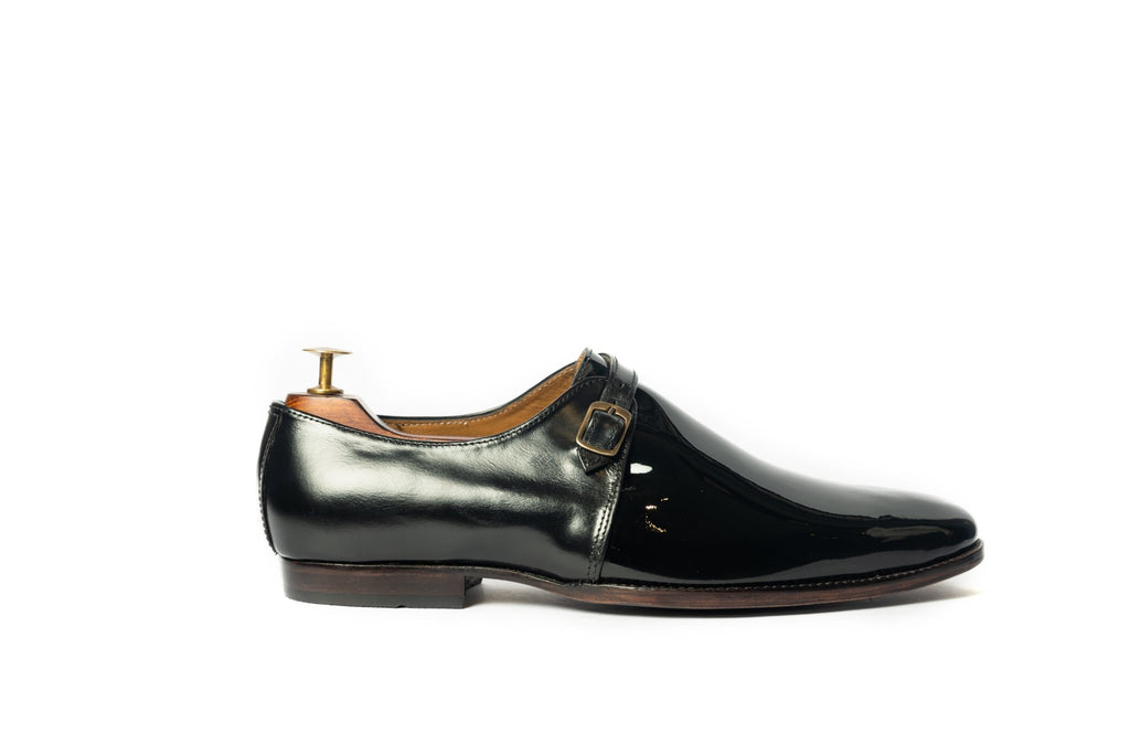 A shoe which is a subtle blend of patent leather and matt finish leather gives a break to the shine for a good contrast. One of the newest addition to the single monk collection. It has everything it takes to look elegant and stand out from the usual single monk straps.
