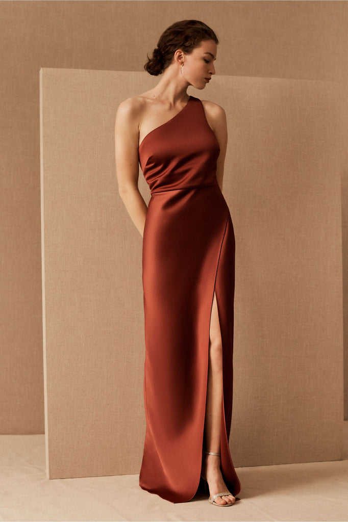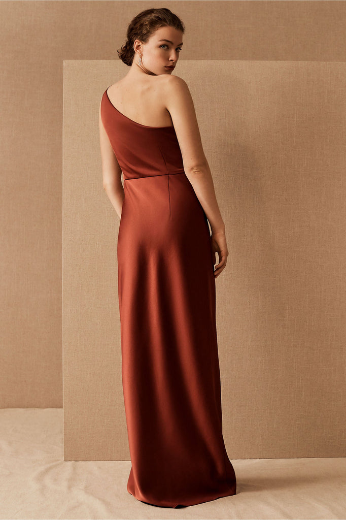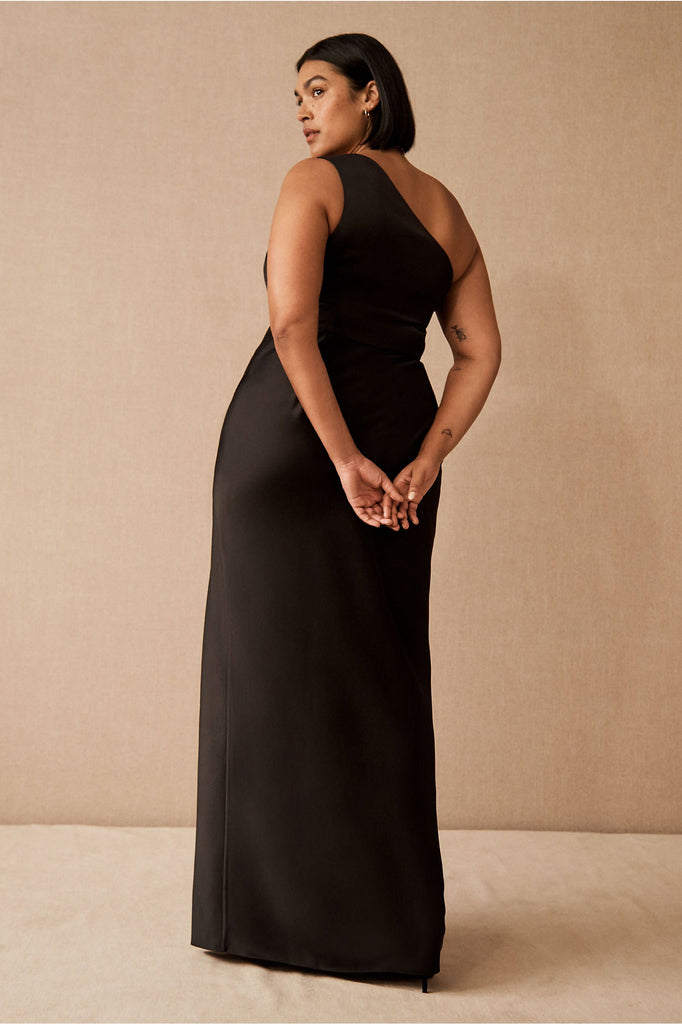 A glamorous one-shoulder neckline tops off this sleek maxi dress in luxurious satin charmeuse. Side zip Polyester; polyester lining