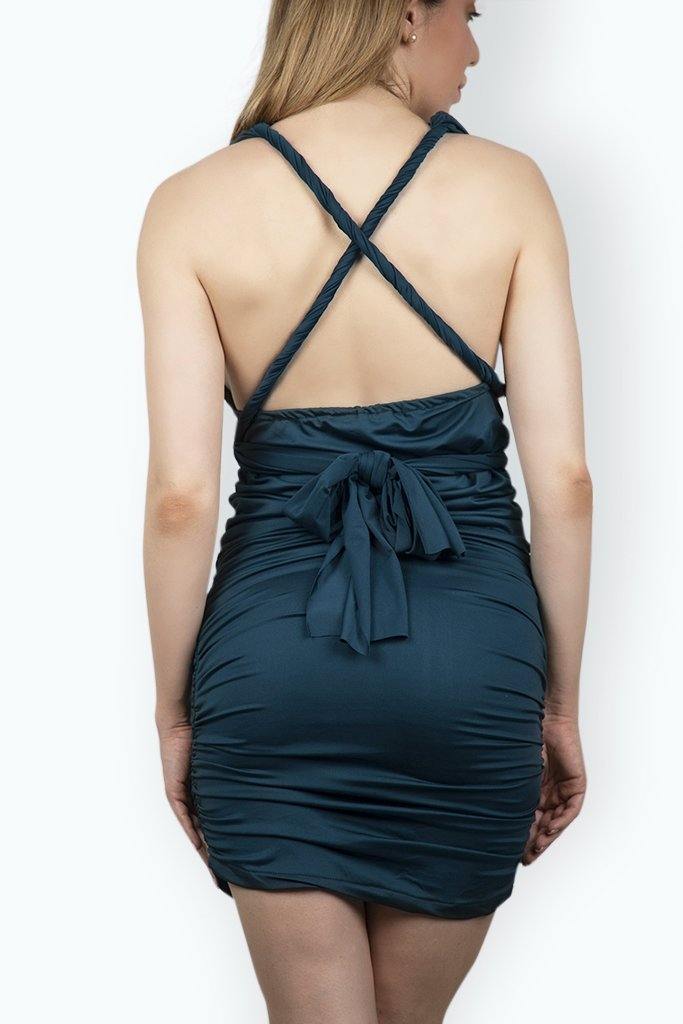 The midi-length Mini Dress has a halter and V-shaped neck. It is a solid green sleeveless Mini Dress. The height of the model is 5’6’’ who is wearing a size ‘M’. The length of the dress is approx. 37 cm long so it is above the knee. This convertible wrap Mini Dress can be worn in more than 24 different ways. It is a good choice for you to be a designer and make you unique and fashionable. The Mini Dresses are available in 8 sizes from XXS to 3XL and in 2 colors. So you have to choose them.
