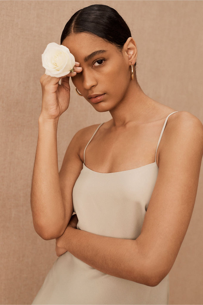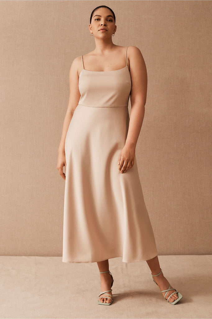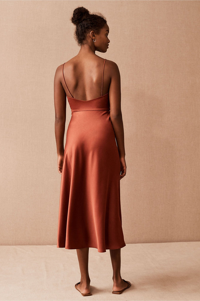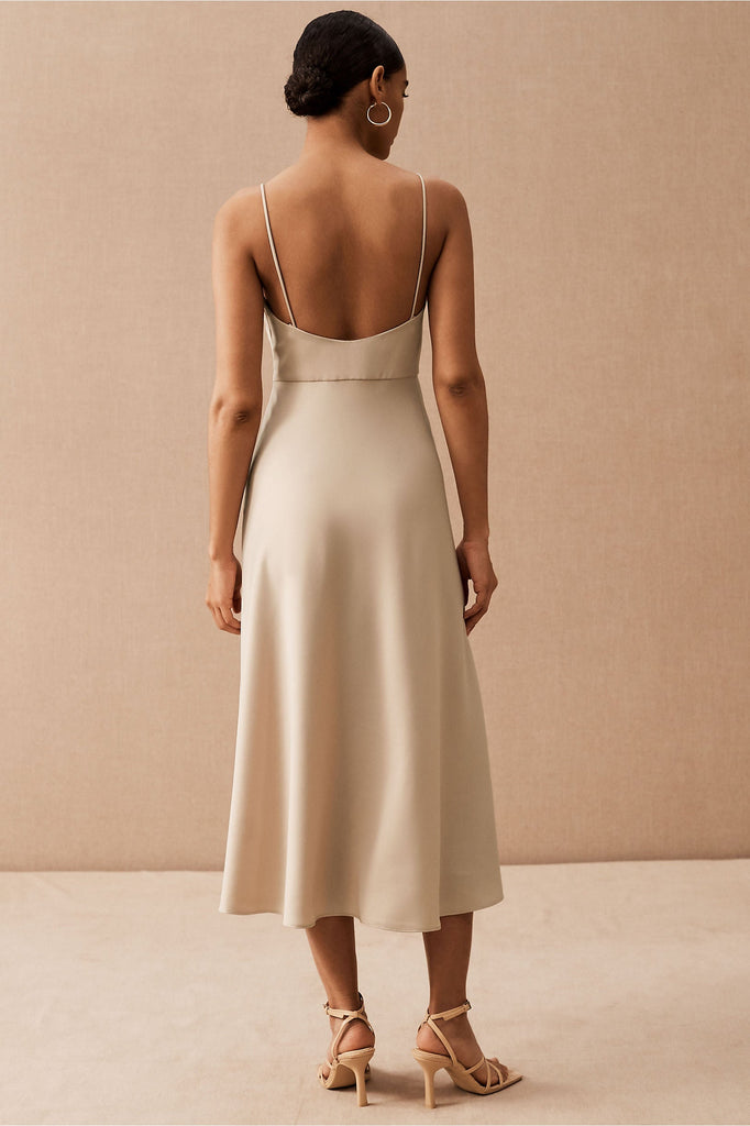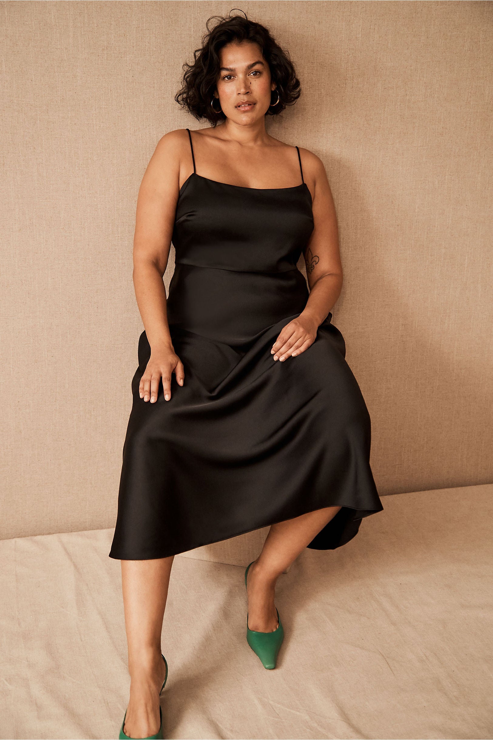 This 90s-inspired midi silhouette goes from celebration to cocktail hour with ease. Slim straps and a sleek skirt create effortless comfort. Side zip Polyester Professionally clean