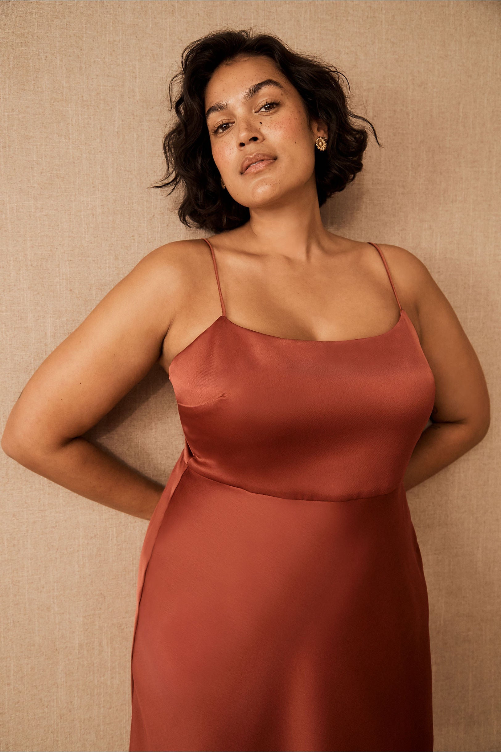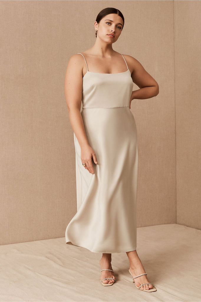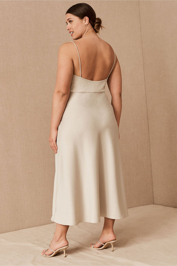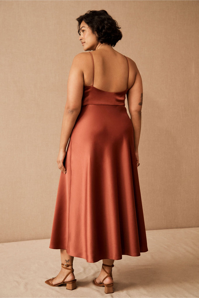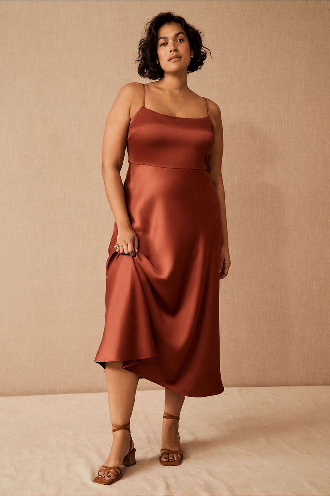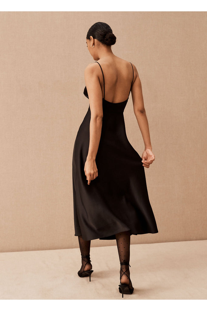 This 90s-inspired midi silhouette goes from celebration to cocktail hour with ease. Slim straps and a sleek skirt create effortless comfort. Side zip Polyester Professionally clean