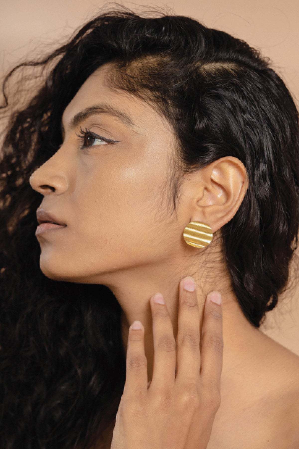 For all the strong yet beautiful, humble yet bold women out there, these gorgeous earrings are for you. Inspired by the flow of an ocean; a flow similar to the multifacets of a woman, the earrings are handcrafted by local artisans using hammering and folding technique in 18kt gold plated brass.