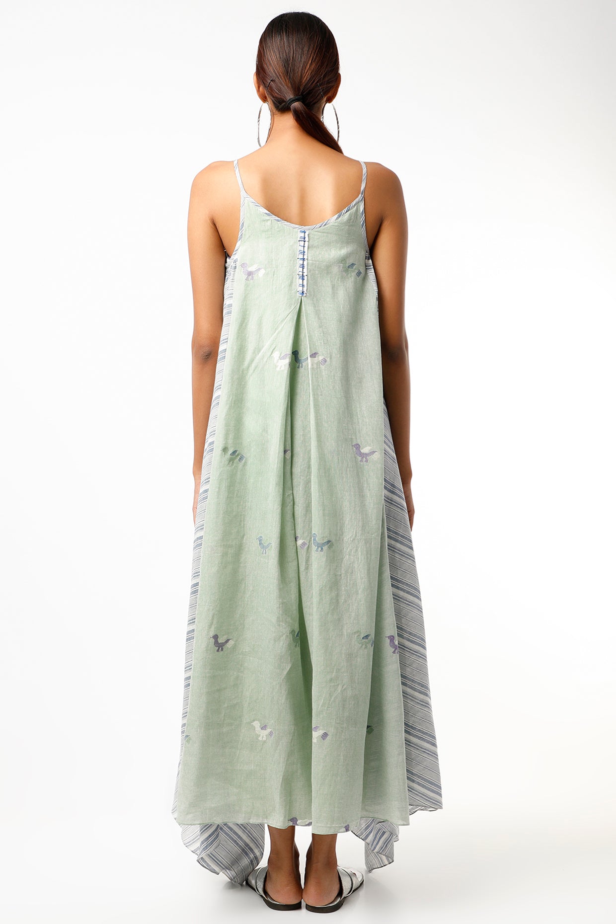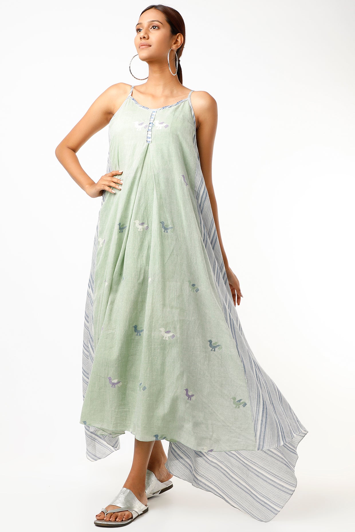 Featuring a mint green jamdani and blue stripes handloom khadi cotton maxi with anchor embroidery work.