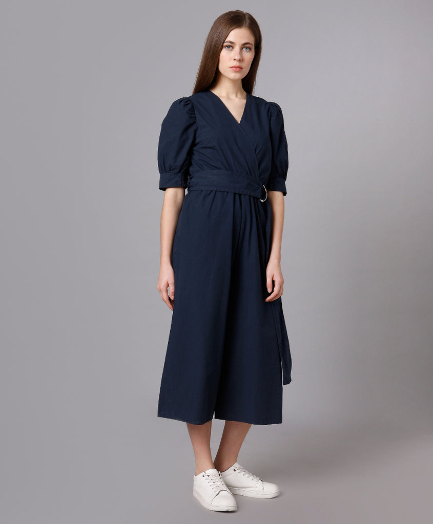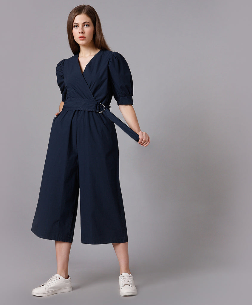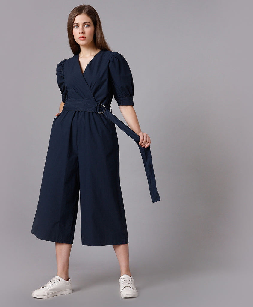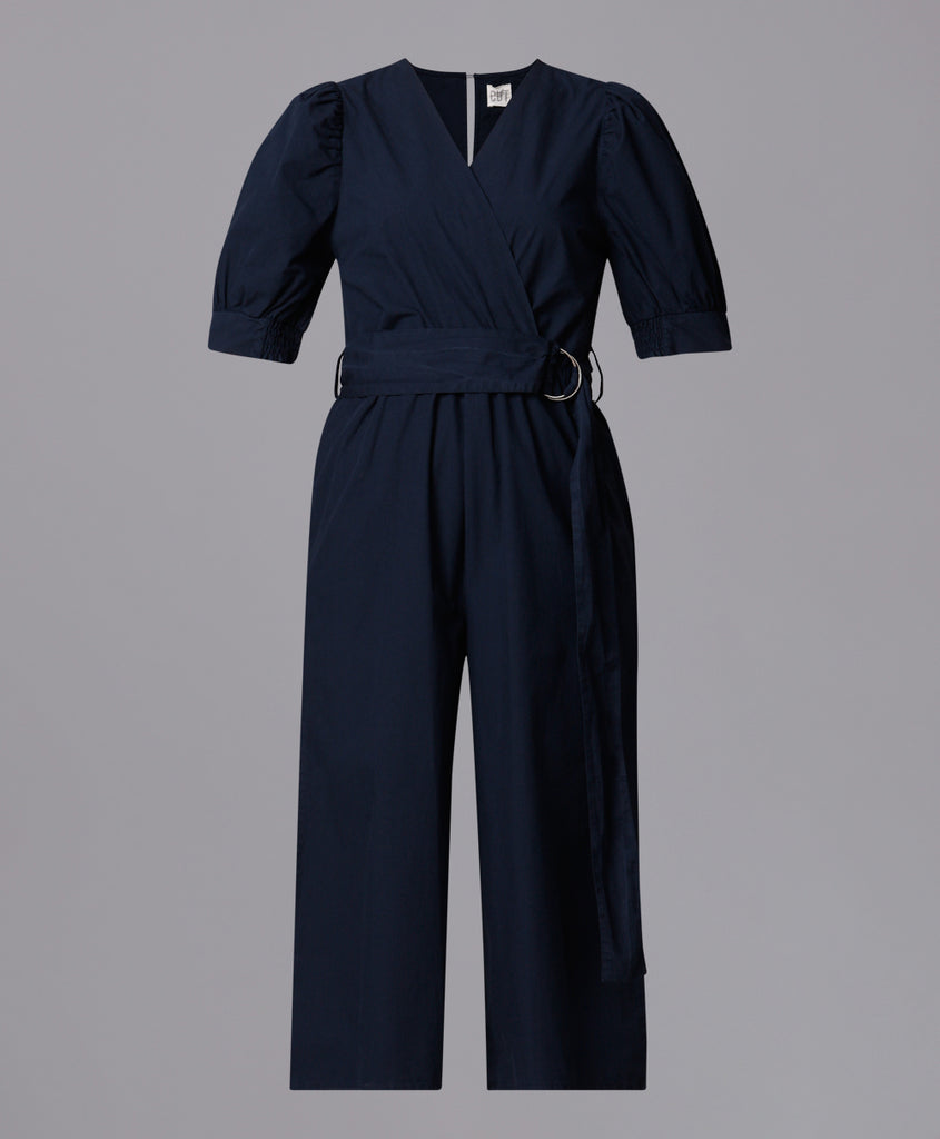 Sophisticated and Elementary. Created from Organic Cotton, this Jumspuit has an elasticated waist with a belt, can be styled with any kind of Flats for a complete look.