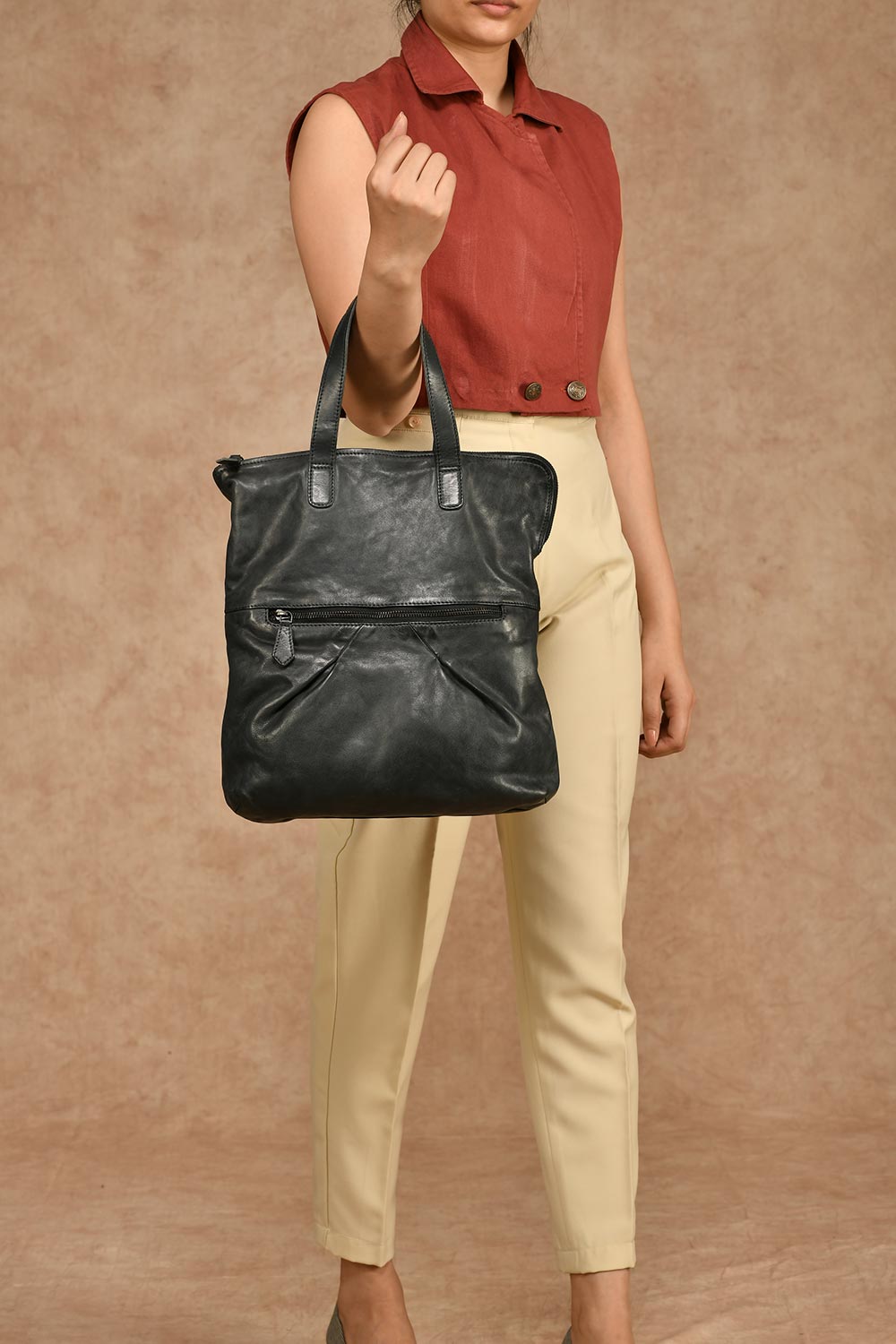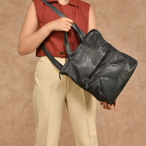 A stone blue coloured tote is what you need to keep you going through the entirety of the day! This bag is perfect for formal and casual meetings and helps you look your best anywhere! It also comes with an adjustable shoulder strap and the main zipper compartment. Also, did we mention that it is vegetable tanned and waxed by hand?