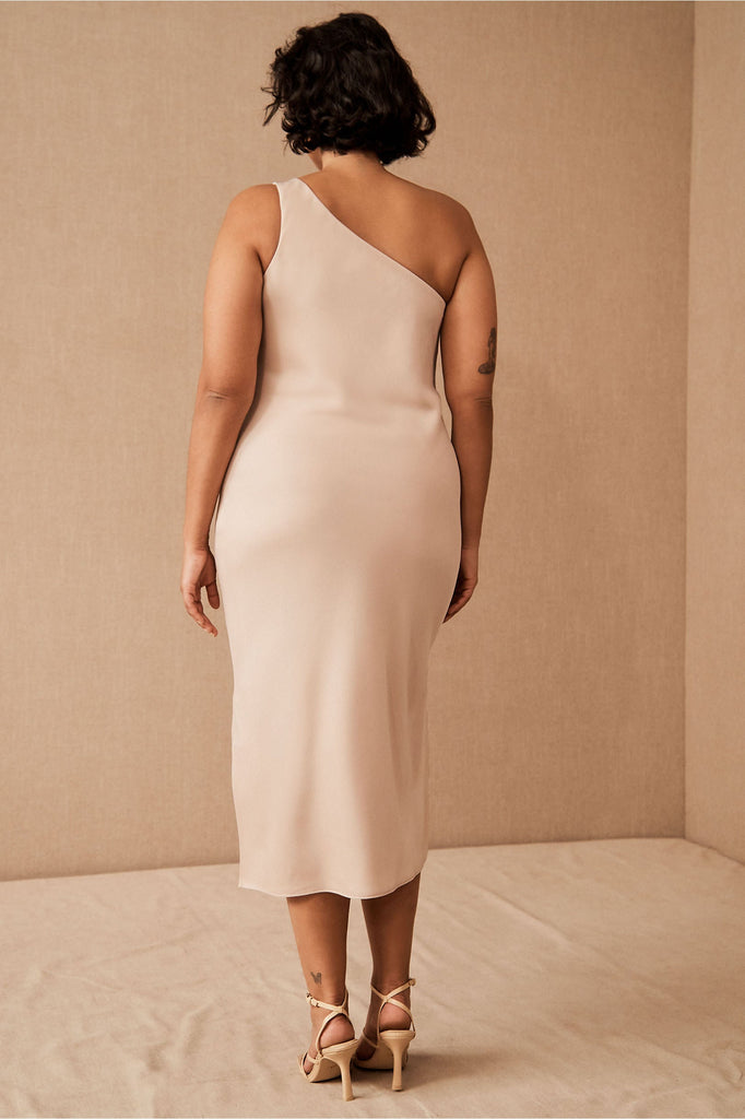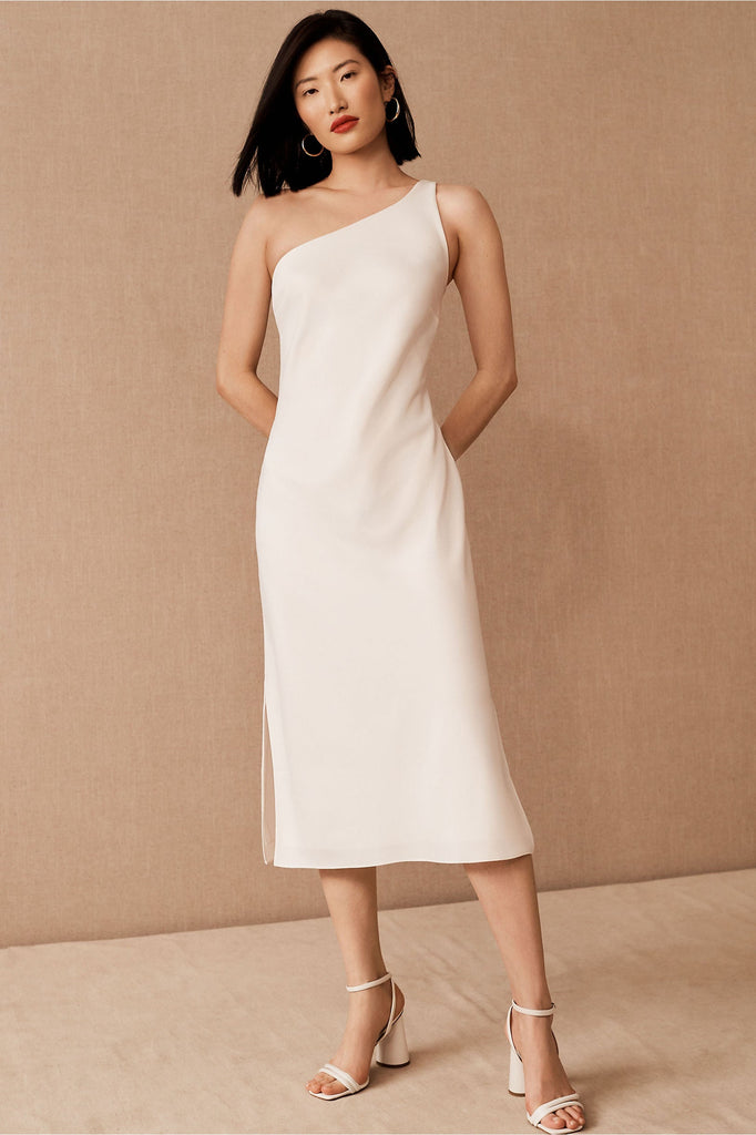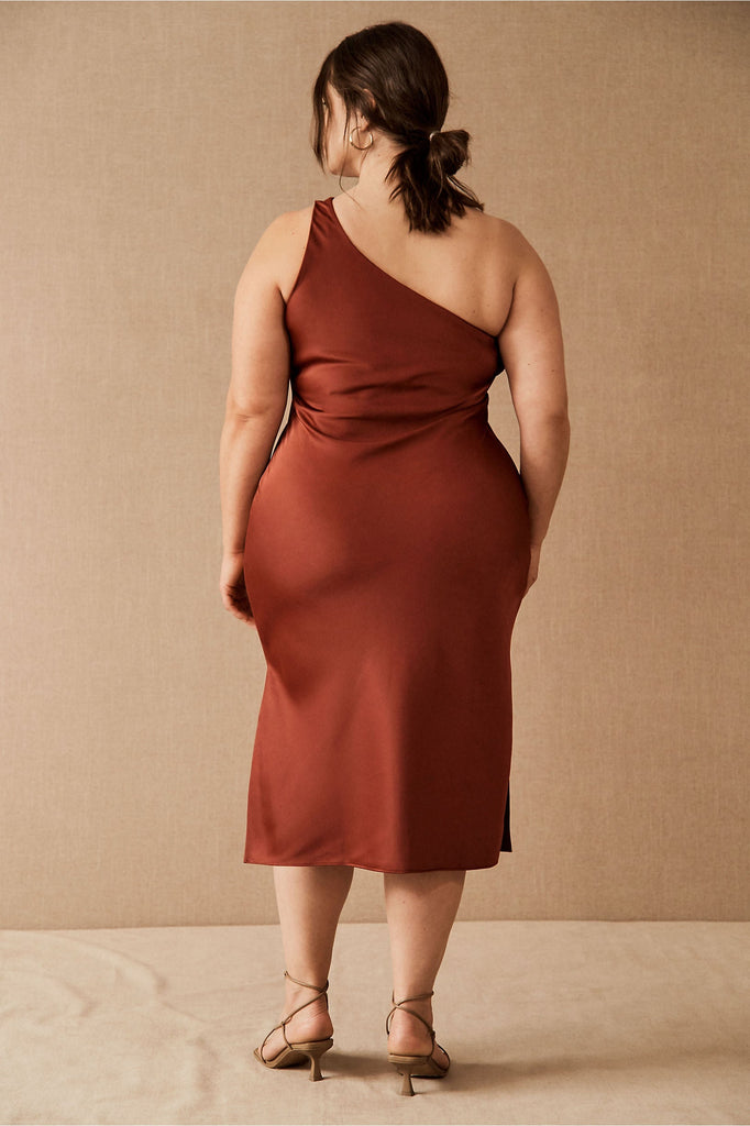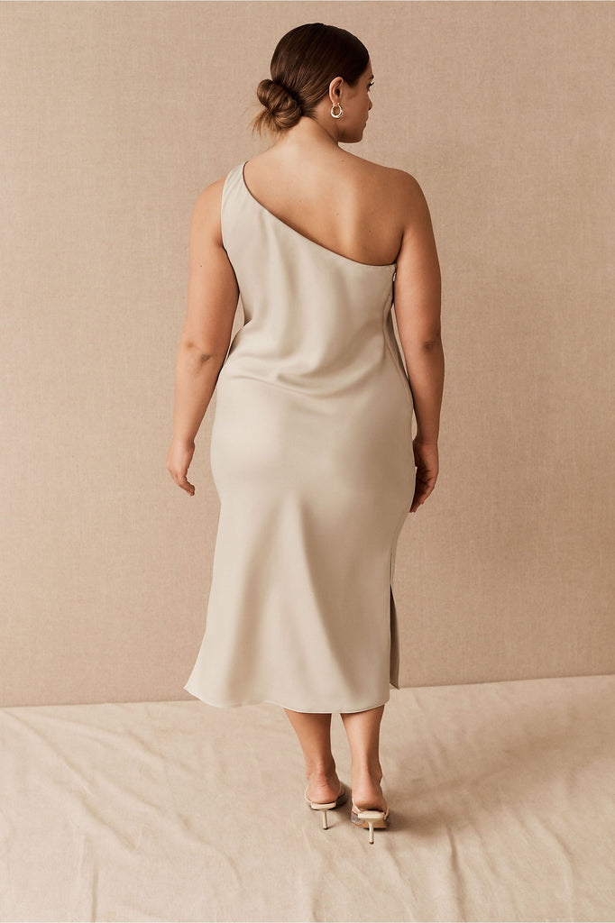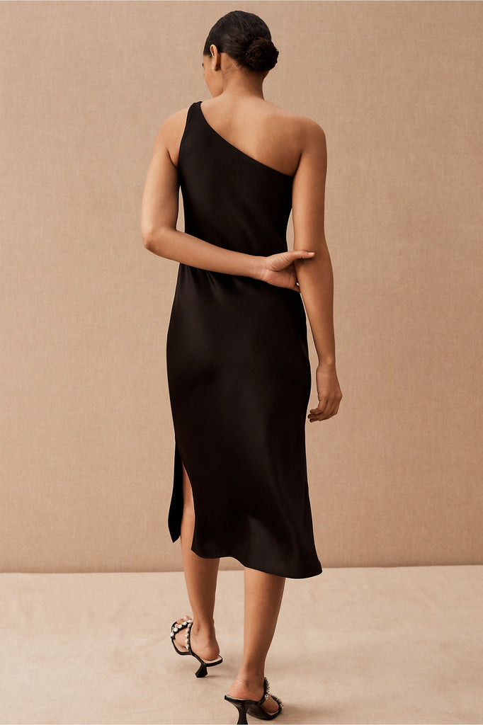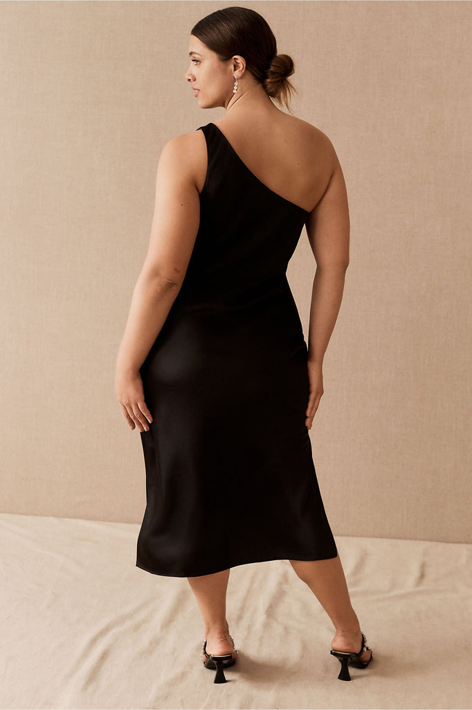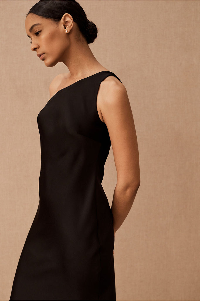 A one-shoulder neckline gives this sleek silhouette a fresh, modern vibe. Side zip Polyester Professionally clean