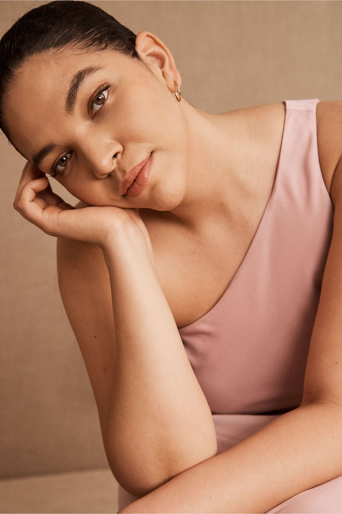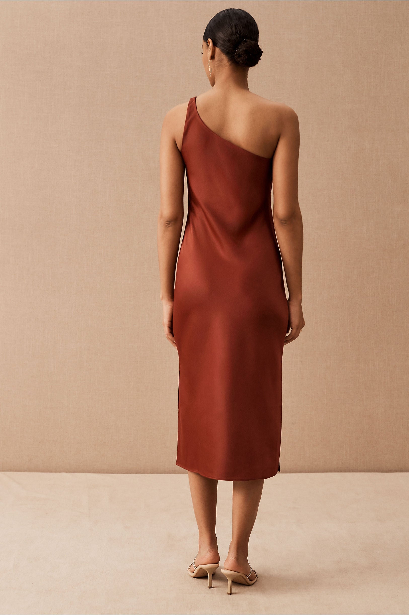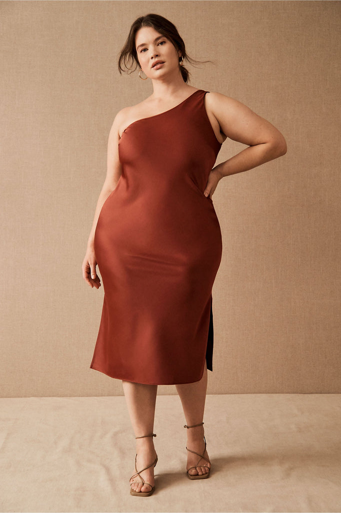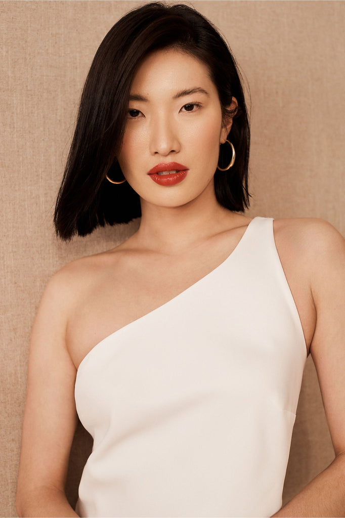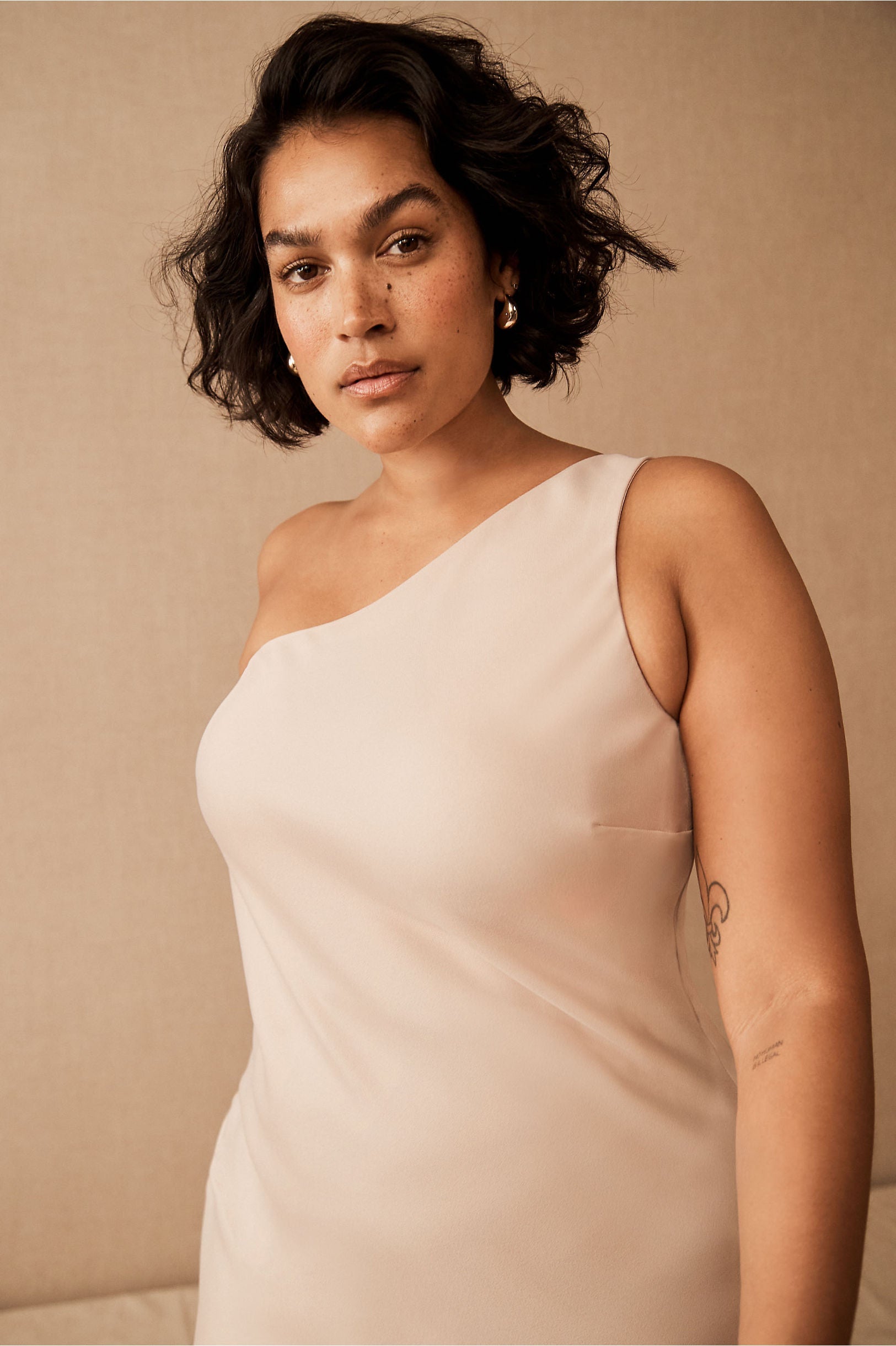 A one-shoulder neckline gives this sleek silhouette a fresh, modern vibe. Side zip Polyester Professionally clean