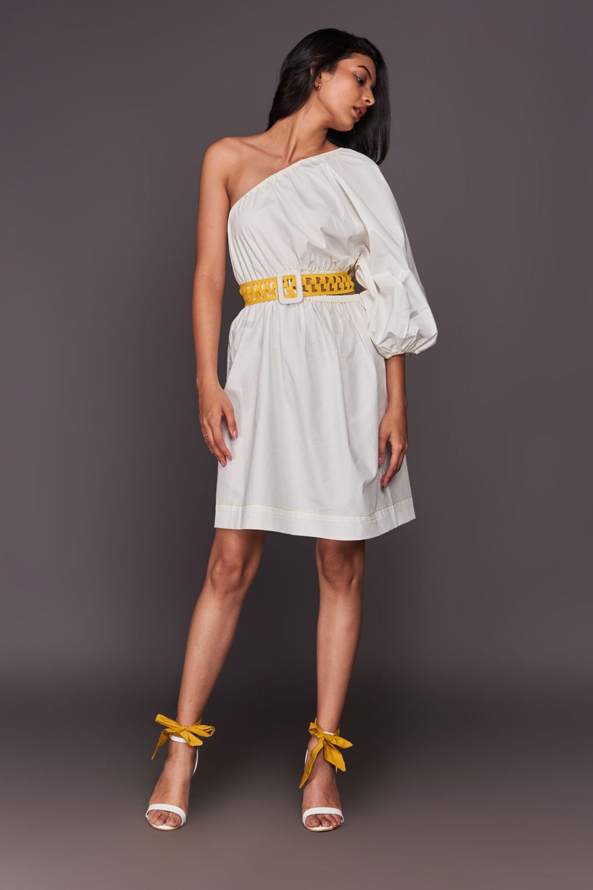 One Shoulder Short Dress with Cutout at One Side of Waist.
